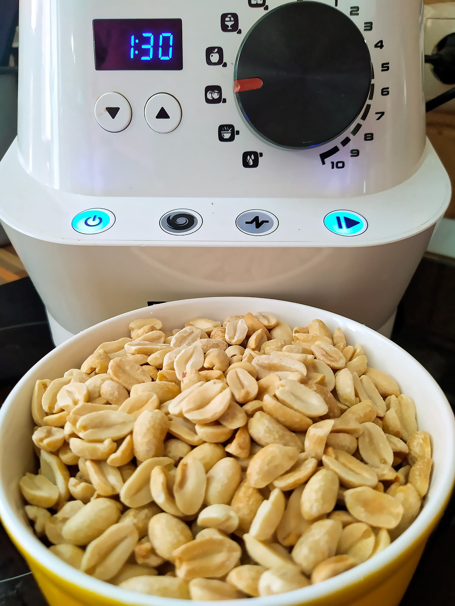 Ореховая паста упоминается в инструкции не раз, в том числе в виде [единственного] рецепта. Мы поддались такому своеобразному 25-му кадру и поджарили 400 граммов арахиса (меньше в чашу загружать нельзя). Орехи (которые на самом деле не орехи) предварительно обжарили в духовке.