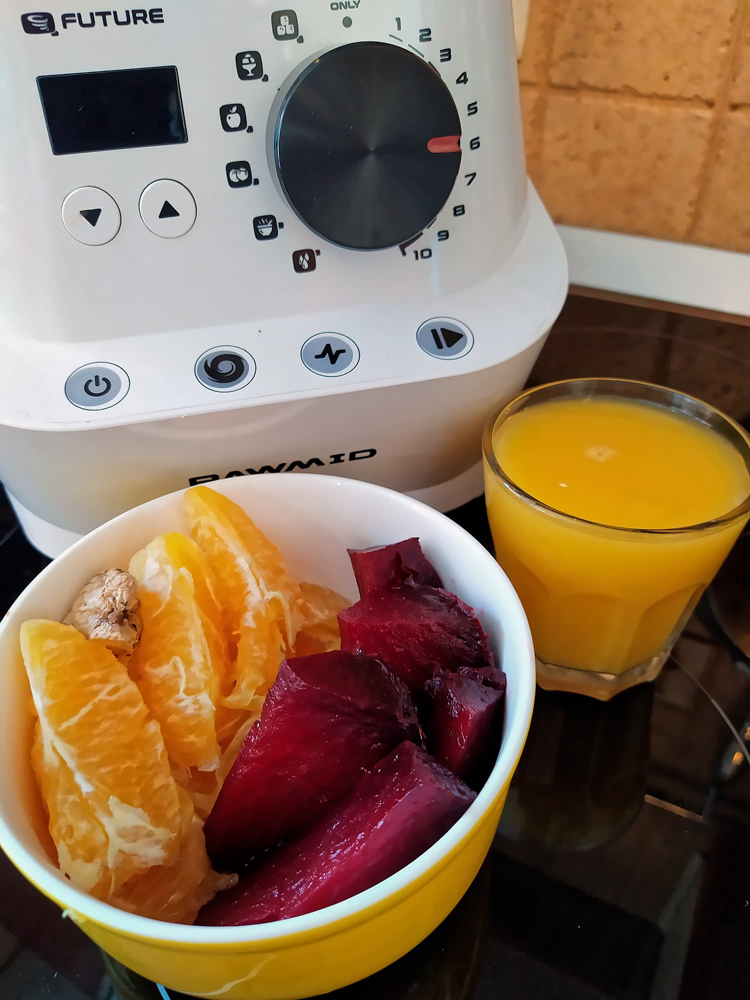 Этот пряный напиток, богатый витаминами, конечно же будем готовить в вакууме. Нам понадобится запеченная свеклина, апельсин, стакан апельсинового сока и небольшой кусочек имбиря.