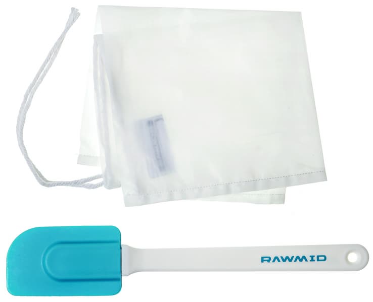 Кроме того, нам достались подарки от Rawmid: мешочек для приготовления орехового молока, силиконовая лопатка и пластиковая спортивная бутылка.