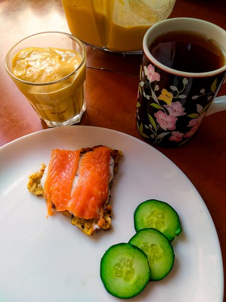 Этот смузи очень густой, его нужно есть ложкой. Текстура — нежнейший, но мучнистый крем (овсянка все-таки).