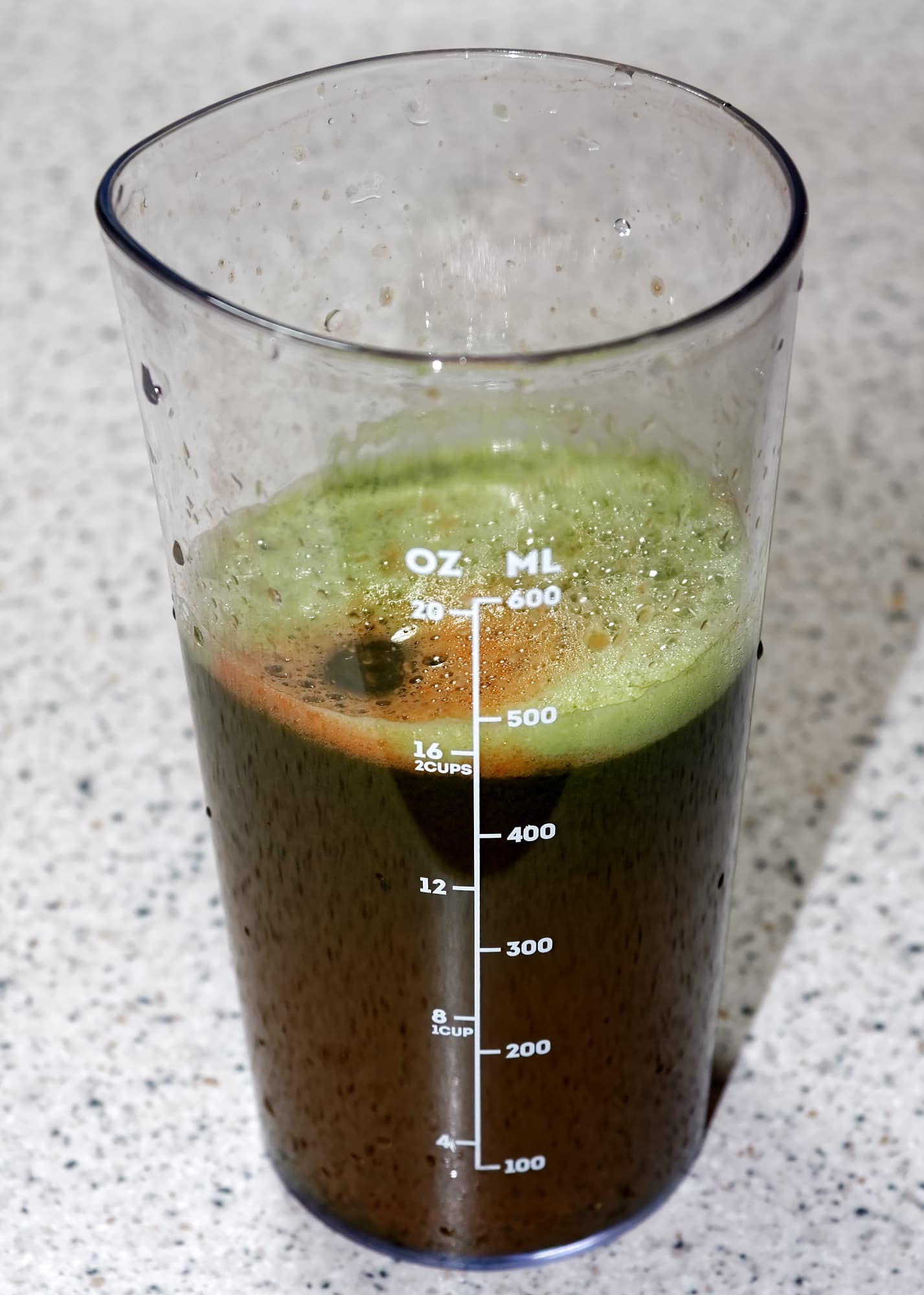 В данном случае нас интересовал в первую очередь не вкус коктейля, а то, насколько легко соковыжималка справится с волокнистой структурой сельдерея и с зеленью. Оказалось, что для Rawmid JDV-03 ни тот, ни другой продукт не представляет никаких проблем. Ставим «плюсик».