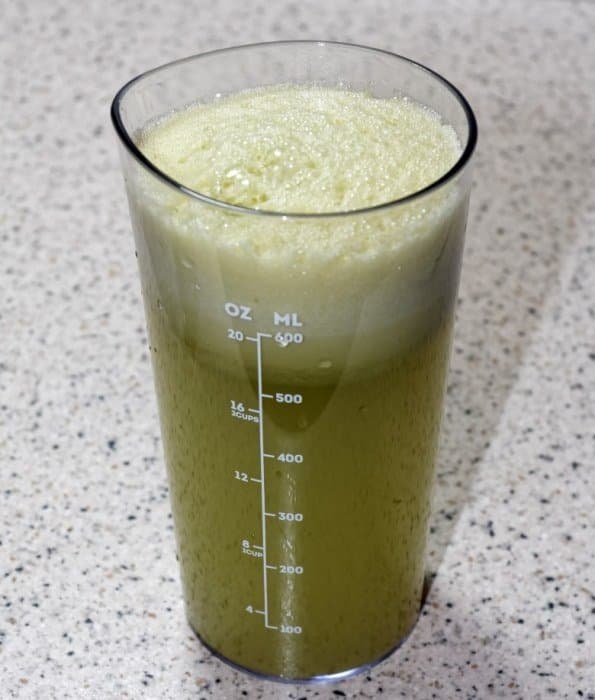 Все ингредиенты нужно нарезать и отжать, готовый сок — перемешать.