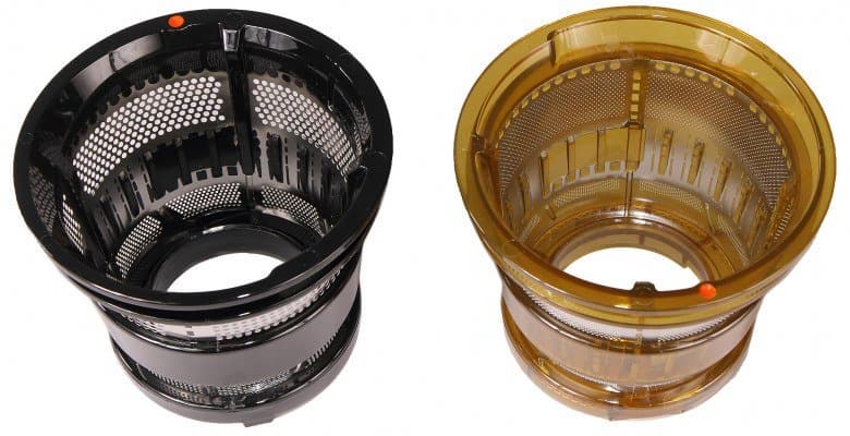 Шнек у Rawmid JDV-03 имеет слегка вытянутую удлиненную форму, благодаря чему он должен лучше справляться с «откусыванием» небольших кусочков. Два сита с мелкими и крупными отверстиями традиционно сделаны из нержавеющей стали и пластика.