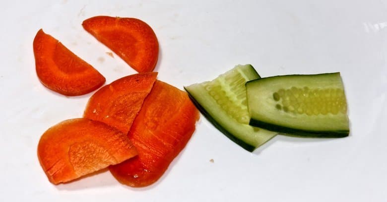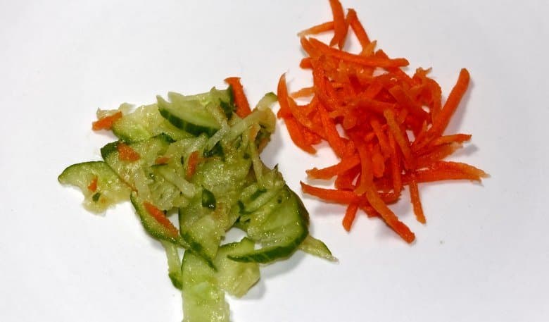 Второй момент касается нарезки небольших кусочков: как только от моркови или огурца оставался небольшой кусочек длиной 4-5 см, он тут же «заваливался» на бок, после чего измельчение продолжалось не в вертикальной, а в горизонтальной плоскости. Как следствие — готовая нарезка заметно различалась по размеру кусочков. Для приготовления салата или овощной зажарки это не будет проблемой, а вот если есть задача «сделать красиво» — то лучше нарезать продукты вручную.