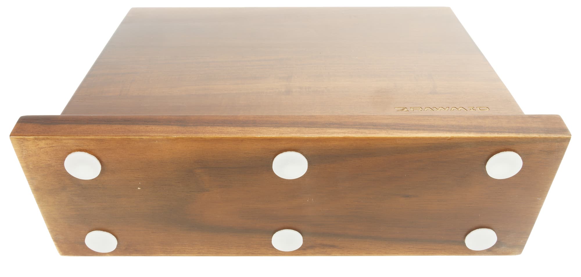Напоследок осмотрим подставку. Выполнена она из древесины акации, считающейся прочной и твердой. По словам производителя, древесина акации обладает высокой биоустойчивостью — она не подвержена воздействию древесных жучков-вредителей. Теплый древесный цвет подойдет, как нам кажется, под все серии ножей от Rawmid. Встроенный магнит надежно удерживает все попавшие к нам на тесты ножи, а два из них, заметим, совсем не маленькие.