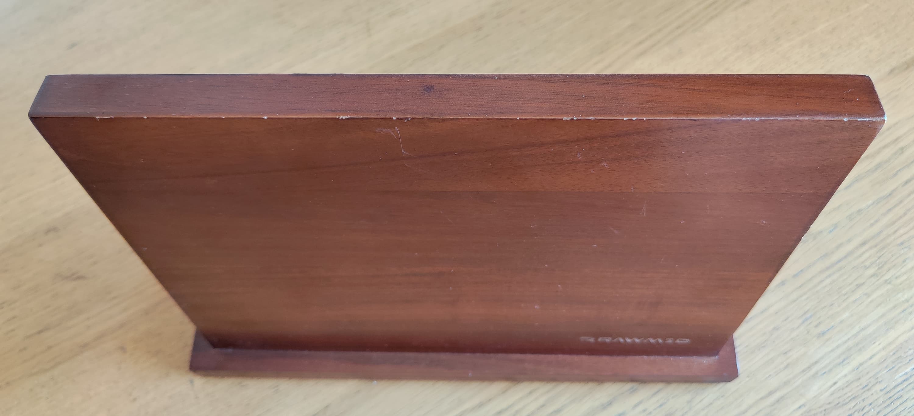 С подставкой все отлично, на ней надежно и крепко размещаются четыре ножа. Для снятия нужно приложить немного усилий, но это и понятно — в серии встречаются большие и относительно тяжелые ножи — будет слабый магнит, нож может и слететь. Но надо отметить, что к концу недели на верхней кромке, с которой непосредственно контактировали лезвия ножей, появились заметные повреждения древесины.