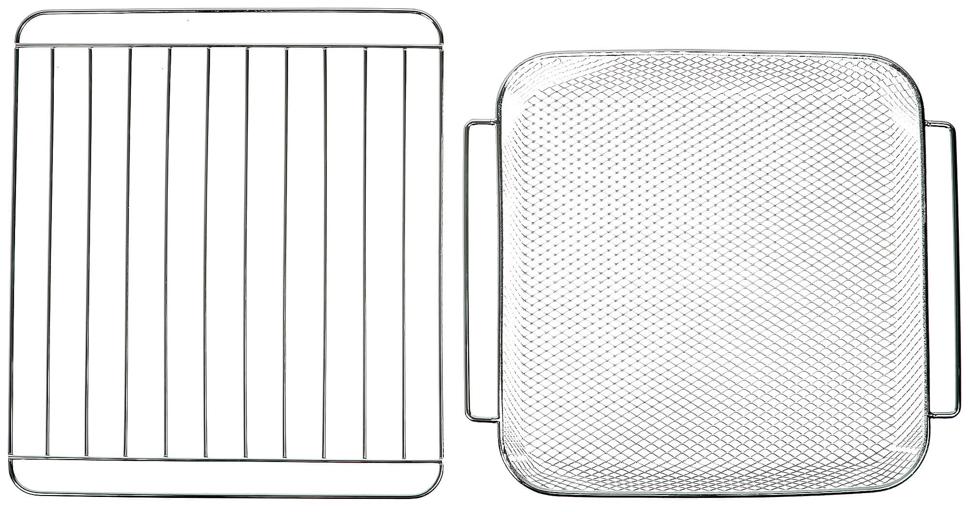 RMA-02 совсем небольшая. Габариты аксессуаров не располагают к масштабной готовке, а вот на одного-двух человек — в самый раз. В корзину отлично ложится килограммовая курица, а на решетке тики в тики помещается стандартная замороженная пицца. Как мы уже писали, такая аэрофритюрница выполняет функции и духовки, и микроволновки, и аэрогриля, так что это отличный способ сэкономить место на небольшой кухне, заменив несколько устройств одним. Если разжиться дополнительными аксессуарами, то RMA-02 станет и электрошашлычницей, и тостером (и не только). Более того, конструкция прибора позволяет готовить сразу на нескольких уровнях. Наверх можно поставить корзину с овощами, а вниз — противень с мясом — полчаса, и обед готов.
