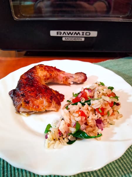 На сайте Rawmid курица-гриль идет второй (первый — картофель-фри) в списке блюд, которые можно готовить в Modern RMA-02. Мысль о ней и правда приходит в голову, как только видишь устройство печи и вертел.