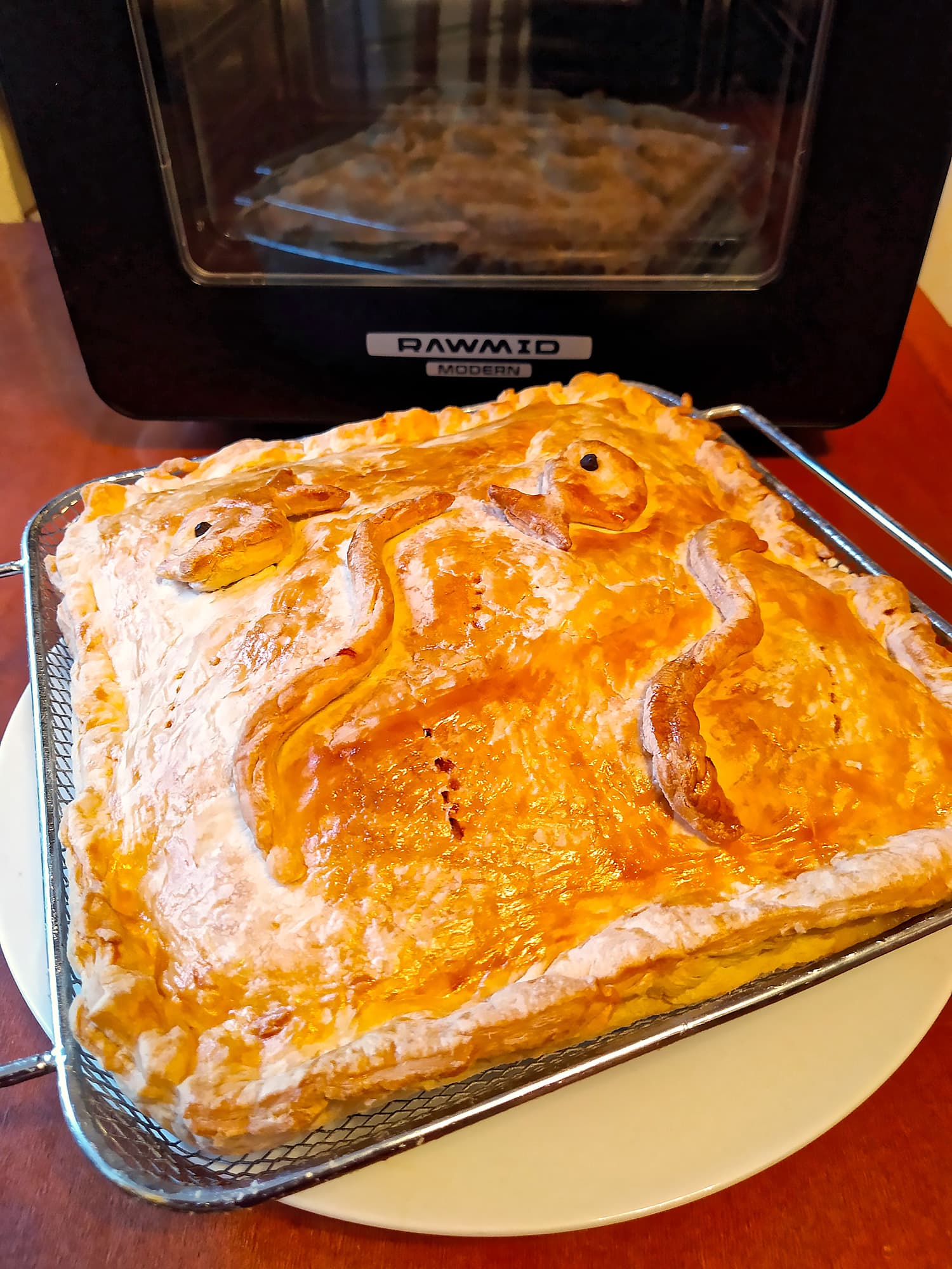 Там, где есть духовка, рано или поздно появляется выпечка. RMA-02 только прикидывается просто какой-то там фритюрницей, на деле являясь полноценной, хоть и небольшой, печью. Так что мы решили делегировать ей пирог с треской и картофелем.