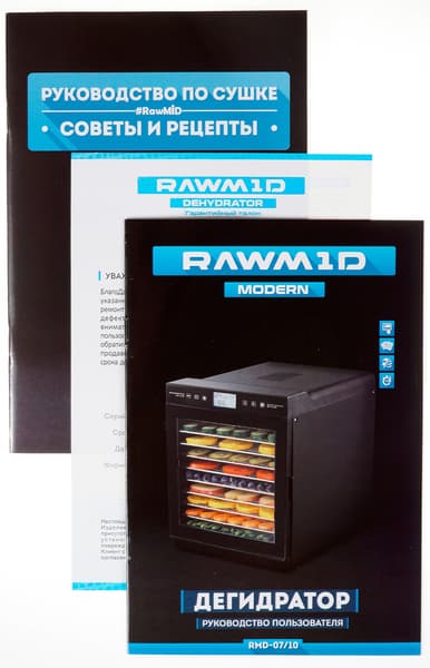 Дегидратор Rawmid Modern RMD-07 нам понравился. Это хоть и достаточно дорогой, но многофункциональный прибор. В отличие от обычных недорогих сушилок круглой формы, которые достаются из закромов в период сезона заготовок, это устройство явно рассчитано на постоянное пребывание на кухне в зоне комфортной досягаемости. Благодаря квадратной форме и неплохому дизайну, дегидратор может занять свое полноправное место на столе, наряду с микроволновкой или блендером.