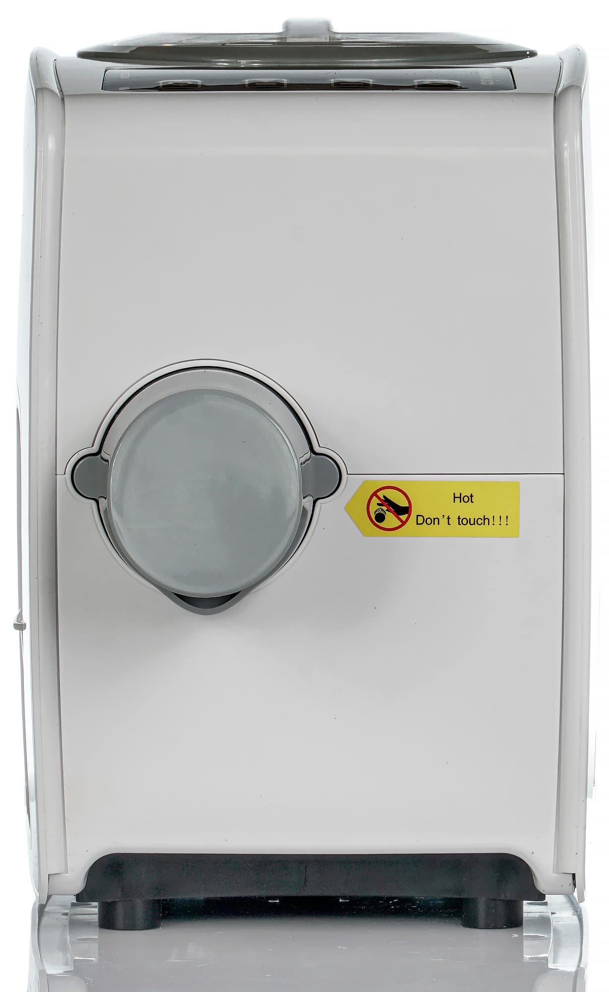 На дне нет ничего интересного: вентиляционные отверстия, пять ножек, три из которых оснащены резиновыми накладками. Ножки приподнимают корпус над поверхностью стола примерно на один сантиметр. Кстати, с правой и левой стороны в корпусе имеются выемки, держась за которые, удобно переносить маслопресс с места на место.