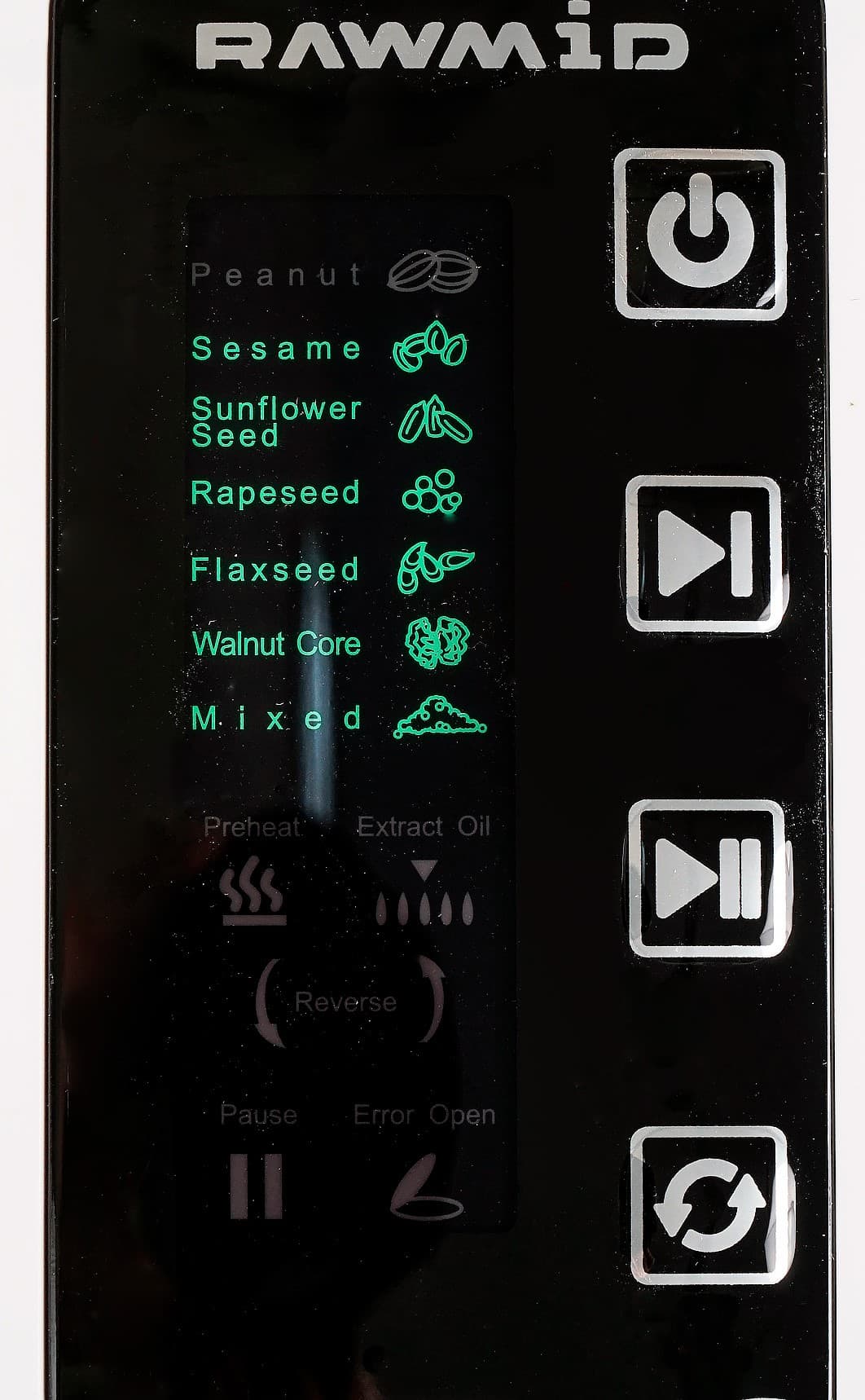 Функция реверса запускается неочевидно, так что почитать инструкцию все же придется. Если, например, маслопресс заклинило, следует нажать кнопку «Старт/Пауза», а затем нажать и удерживать в течение 5 секунд кнопку «Реверс». Пока удерживается эта кнопка, шнек вращается в обратном направлении.