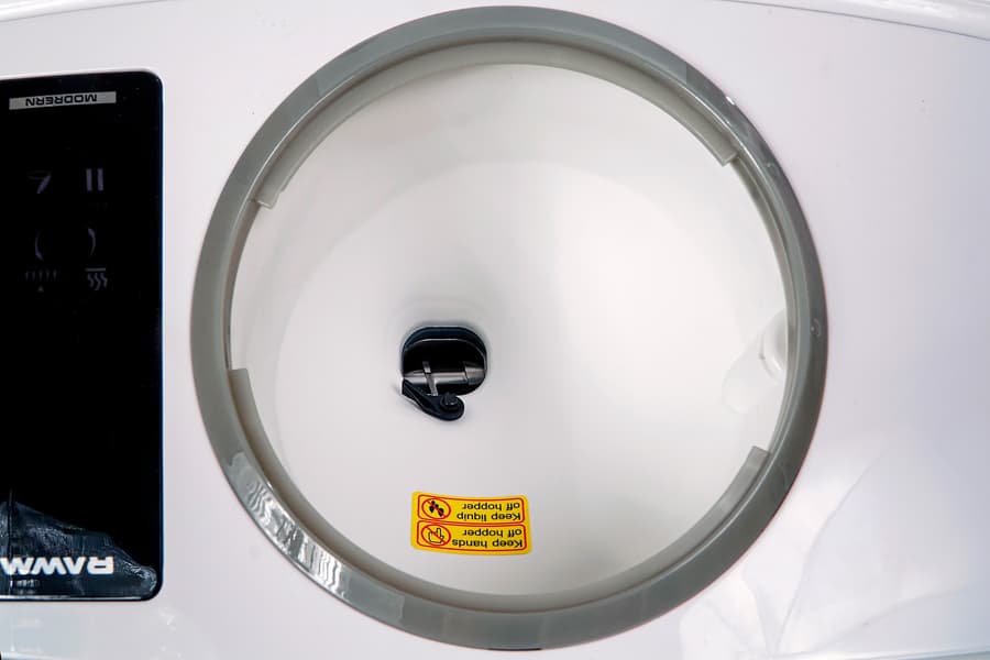 Также как и в рассмотренных ранее моделях, маслопресс Rawmid Modern RMO-03 не начнет работу, если на загрузочную камеру не надета крышка. Во время работы пресса крышку запрещено поднимать — в противном случае вращение шнека останавливается. Крайне удобна функция автоматического отключения: через одну минуту холостого хода останавливается шнек, через пять минут выключается прибор.