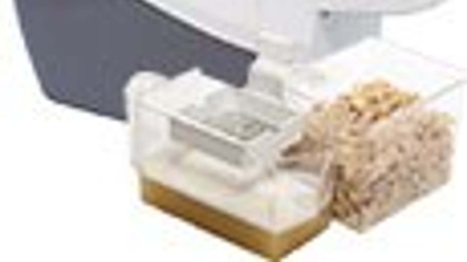 Два контейнера (для масла и жмыха) изготовлены из ударопрочного пищевого ABS-пластика. Выглядят лаконично, без излишеств. Материал прозрачный и довольно прочный на вид. Сито для процеживания плотно устанавливается на контейнер для масла, т. е. масло фильтруется сразу же при выжимке. Также фильтр защищает масло от жмыха, который может изогнуться и попасть в непредназначенное для него место. Контейнер для жмыха оснащен дополнительной крышкой, которая позволяет в процессе приготовления масла избавиться от разбрызгивания и раскидывания жмыха. Изначально это решение нам показалось очень правильным и нужным. Однако в процессе тестирования данный аксессуар был снят, т. к. при переработке полукилограмма семян или орехов часто требуется утрамбовывать жмых в контейнере.