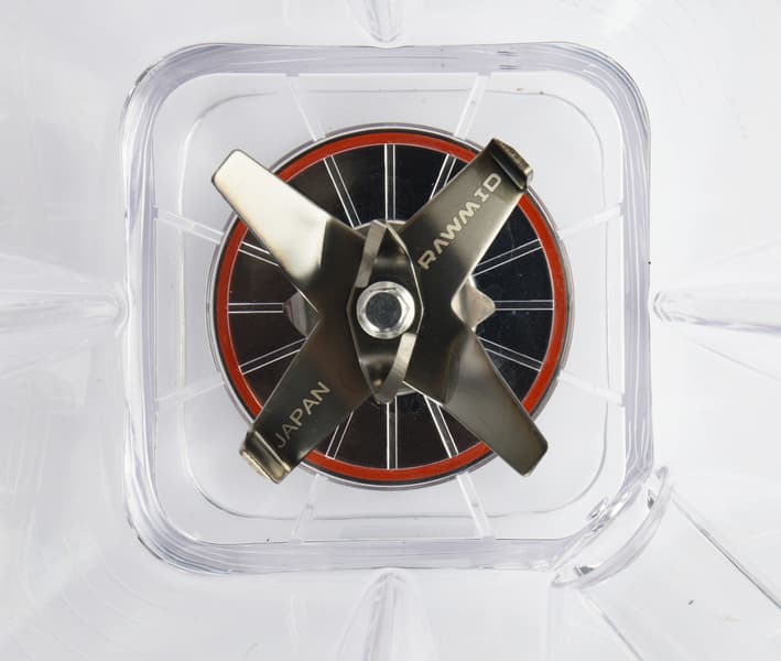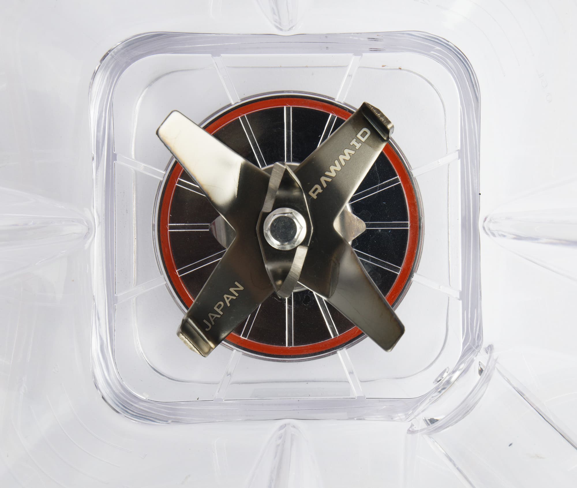 Основной блок ножей состоит из восьми лезвий: четырех маленьких и четырех длинных: загнутые вверх лезвия помогают эффективно измельчать ингредиенты, добавленные сверху через отверстие в крышке, а загнутые вниз не позволяют продуктам скапливаться под ножом. Заточка лезвий гладкая, края острые. По информации производителя лезвия покрыты титановым напылением.