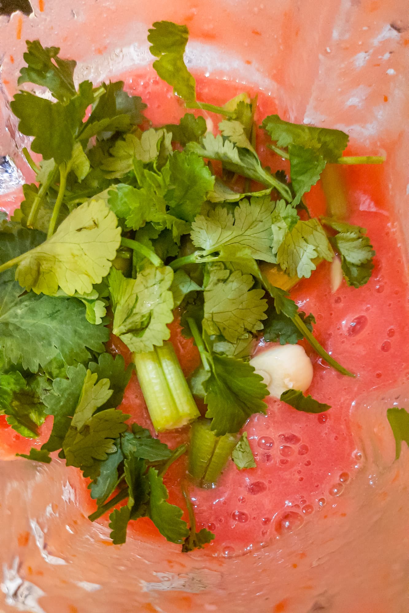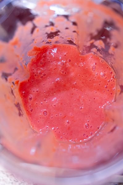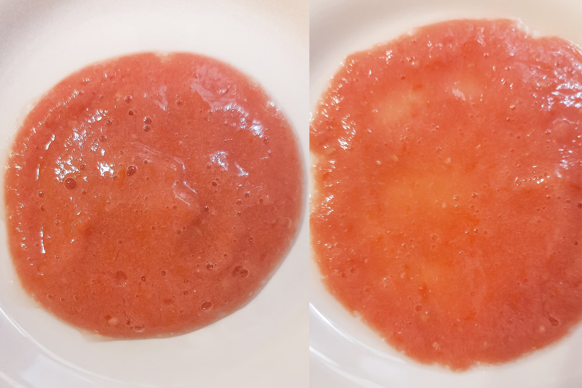 Через 30 секунд достали кувшин, сняли крышку и проверили содержимое — получилась воздушная однородная томатная масса.