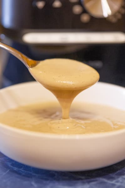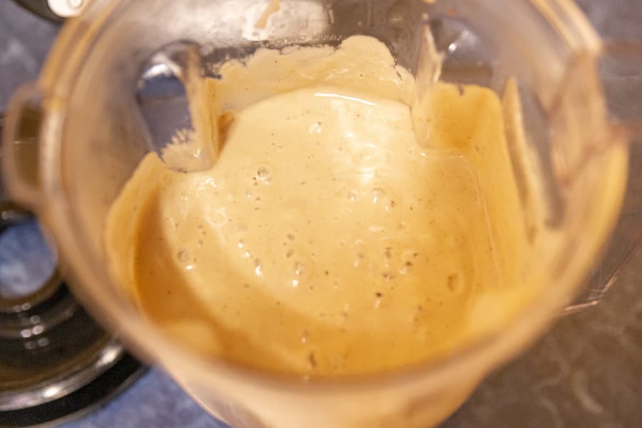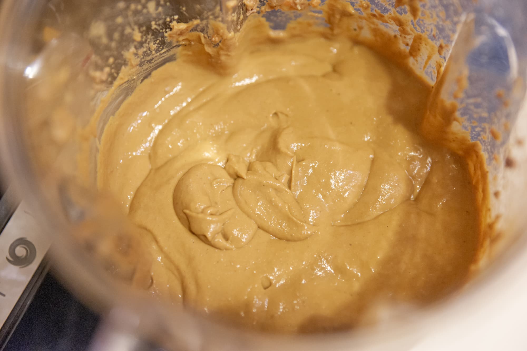 Добавили оставшуюся половину продуктов и, меняя скорость с 5-й до 10-й, довели общую массу до однородной кремовой консистенции за 45 секунд.