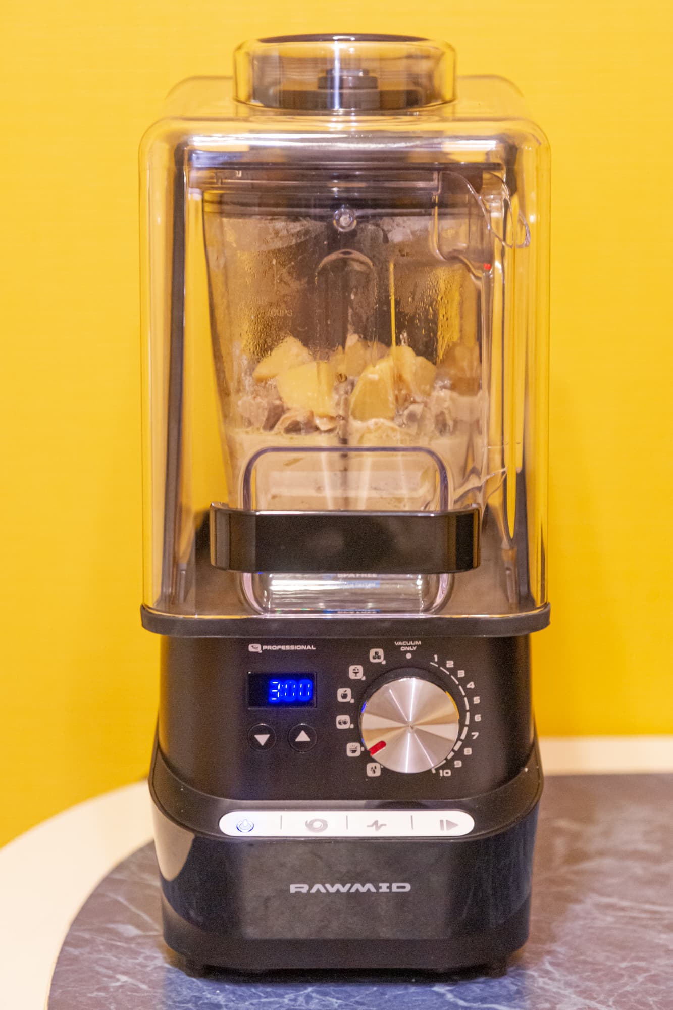 Rawmid Pro RPB-04 отличается от своих бюджетных собратьев в первую очередь наличием съемного шумоизолирующего колпака и функцией вакуумирования. Измельчение в вакууме призвано уменьшать окисление продуктов (в результате чего в готовом блюде лучше сохраняются витамины и антиоксиданты), а также способствовать более насыщенному вкусу и правильной консистенции. В обзоре мы расскажем, как вел себя блендер при обработке разных продуктов и поделимся своими впечатлениями.