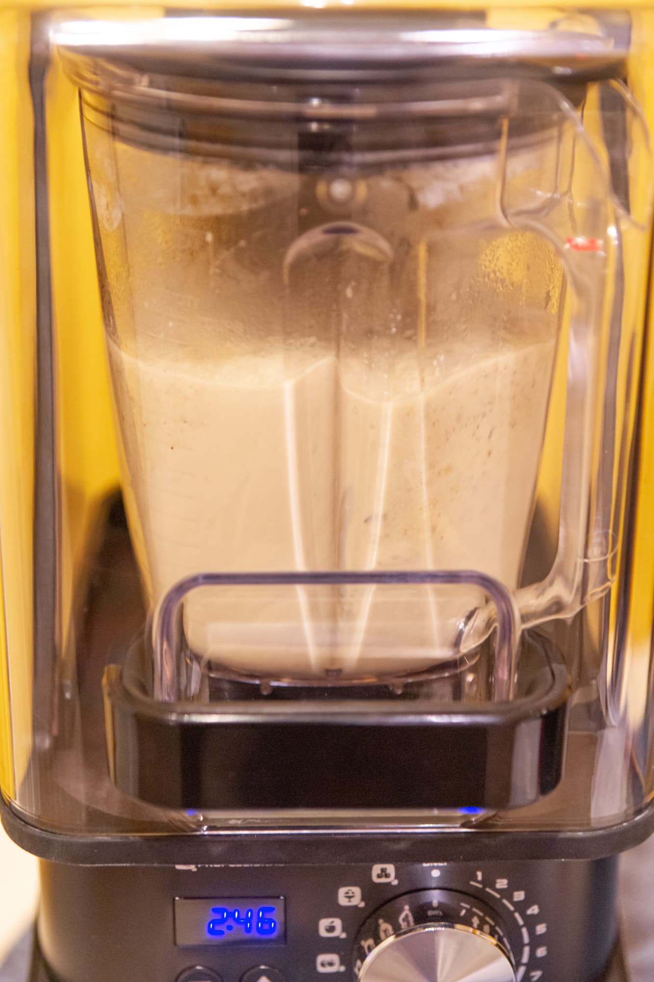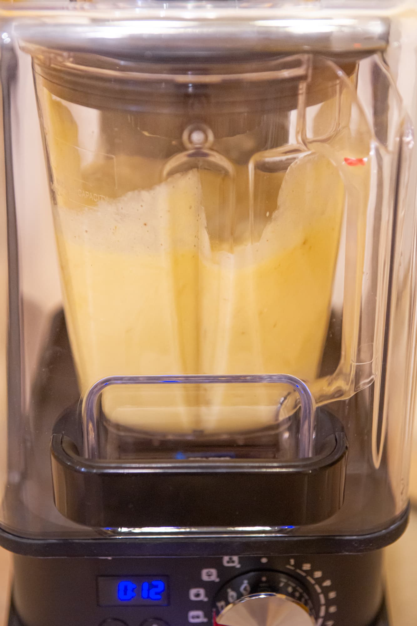 Включили режим «Soup» (Суп) без вакуумирования. По умолчанию режим предлагает 3 минуты. Не задумываясь нажали «Старт» и стали наблюдать. Когда обратный отсчет времени на панели управления показал 2:20, мы увидели, что все готово. Остановили блендер — и не ошиблись, за это время ингредиенты превратились в роскошный по консистенции крем-суп.