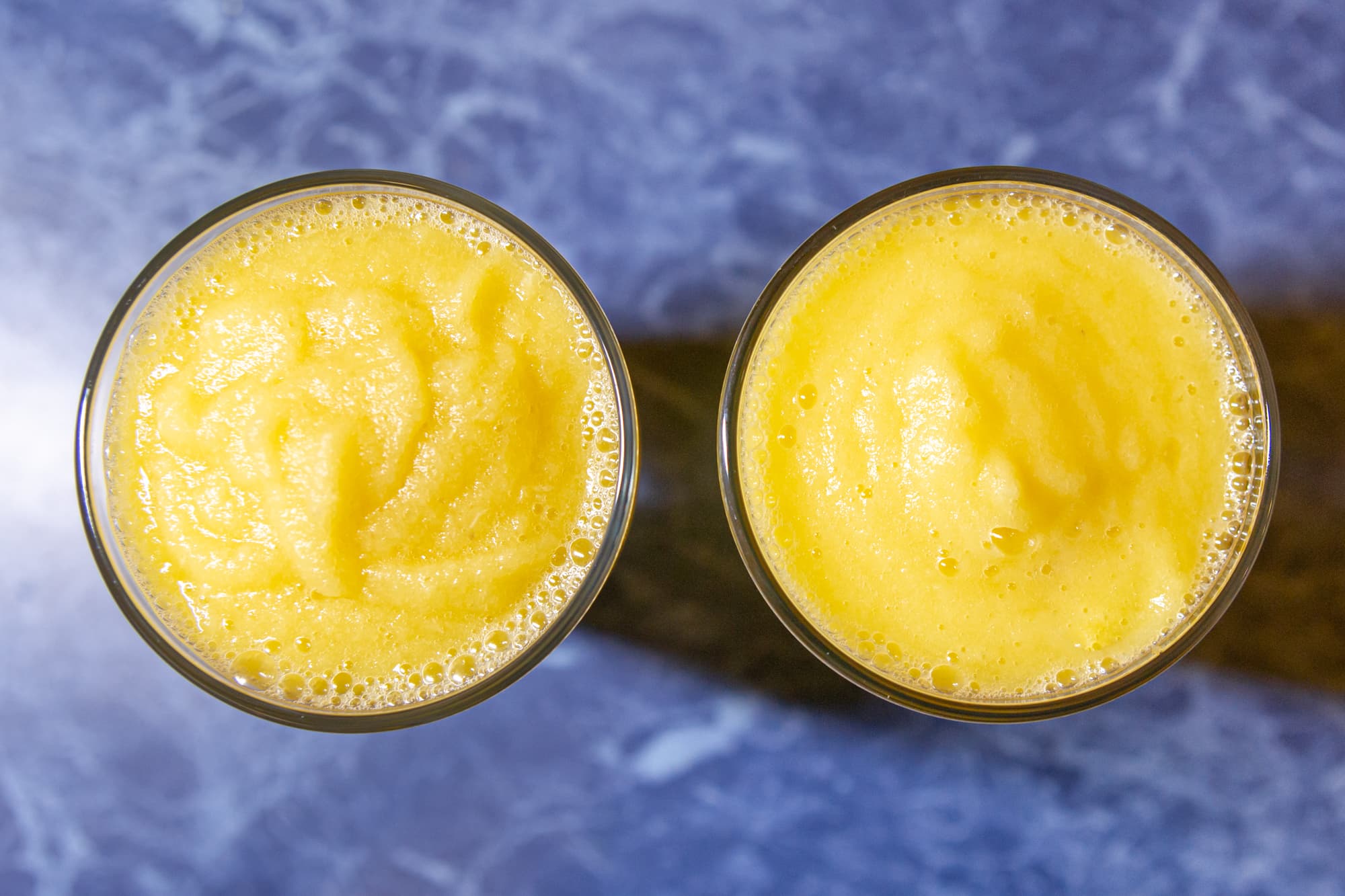 Ровно через 30 секунд остановили блендер и разлили коктейль по стаканам. Роскошно, причем абсолютно. Идеальная консистенция идеального смузи.