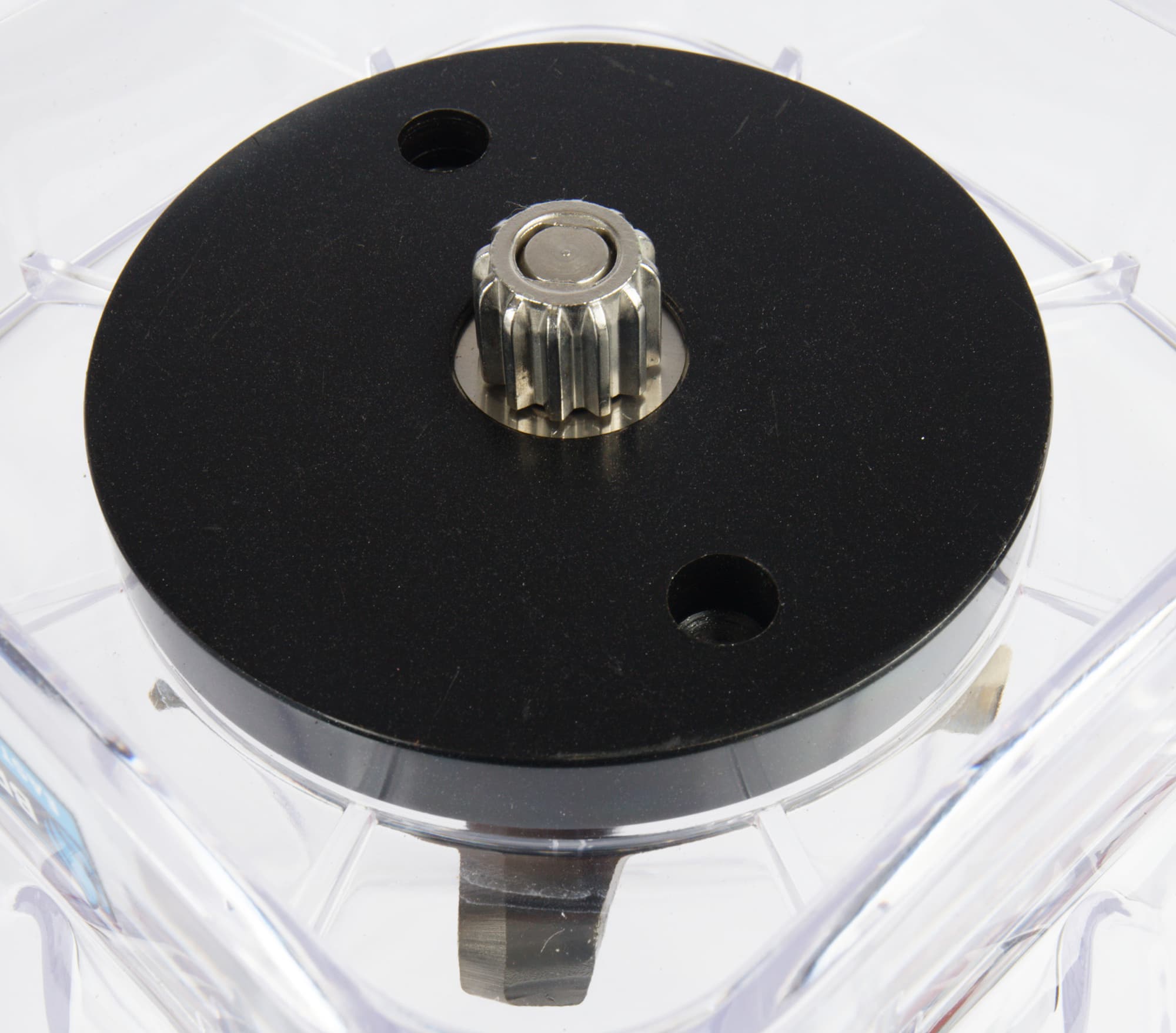 После установки чаши с крышкой на корпус, сверху опускается вакуумный рычаг, чтобы зафиксировать деталь на чаше нужно слегка надавить на него до щелчка. Затем сверху опускается антишумовой колпак. По окончании работы колпак поднимается, заглушка, находящаяся на вакуумном рычаге, отодвигается и рычаг отсоединяется от чаши.