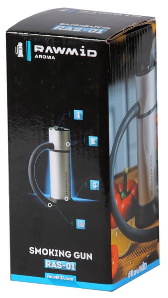 Дымогенератор Rawmid нас весьма порадовал: благодаря экспериментам с этим прибором мы выяснили, что в домашних условиях можно с легкостью приготовить самые разные продукты «со вкусом копчения» — начиная от простых снеков и закусок (сухарики, попкорн, сыр) и заканчивая довольно сложными и экзотическими блюдами (коктейли, соусы и т. п.).