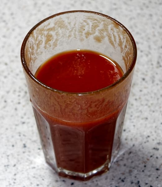 Мы решили проверить, насколько оправданы такие идеи, и приготовили «Кровавую Мэри» с дымком — взяли томатный сок, табаско и вустерский соус, алкоголь по вкусу, соль — смешали все вместе, перелили в стакан, добавили дыма и хорошо взболтали.