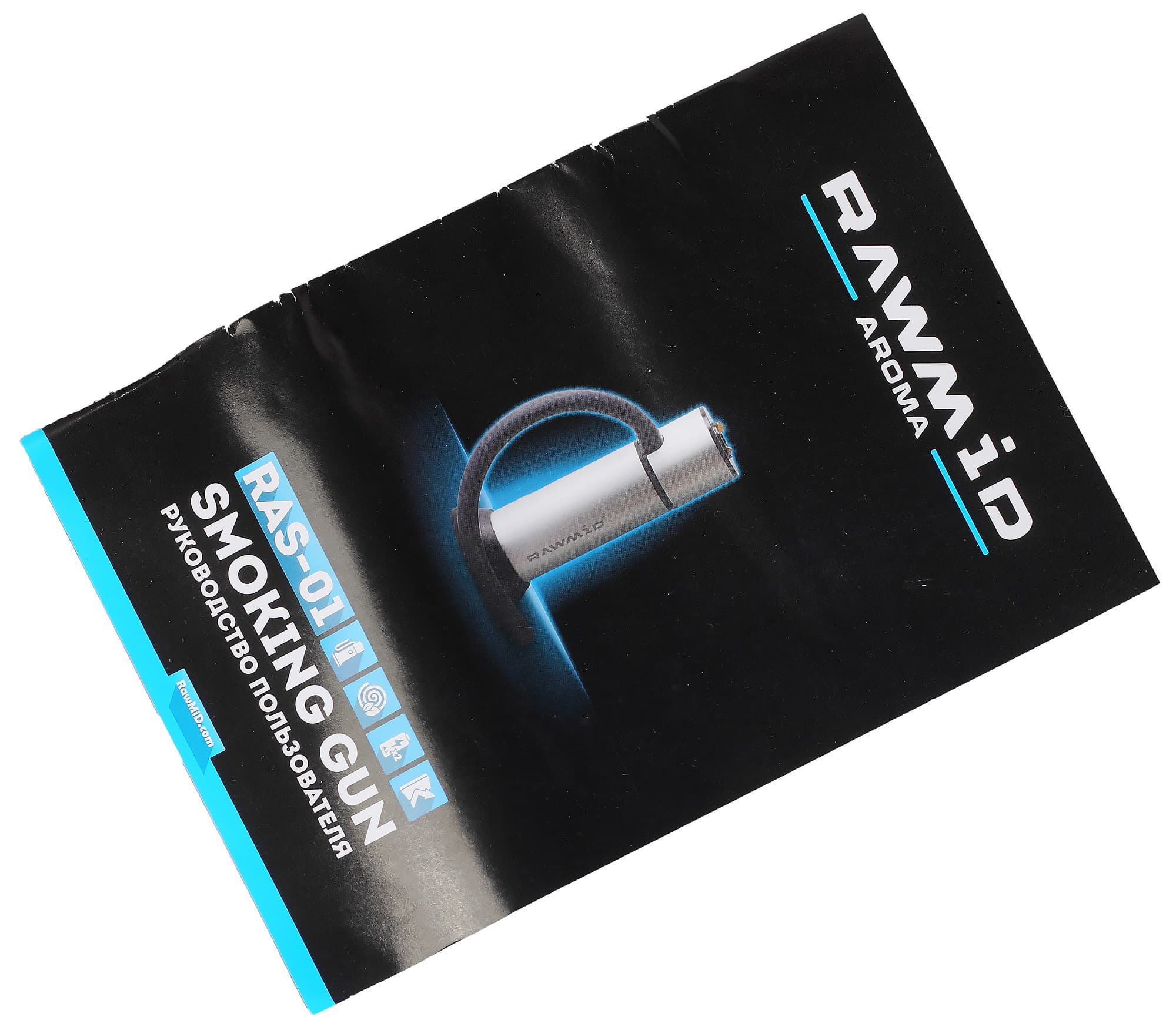 Дымогенератор поставляется в небольшой картонной коробке, оформленной в фирменной стилистике Rawmid — черный фон и красочные цветные иллюстрации.