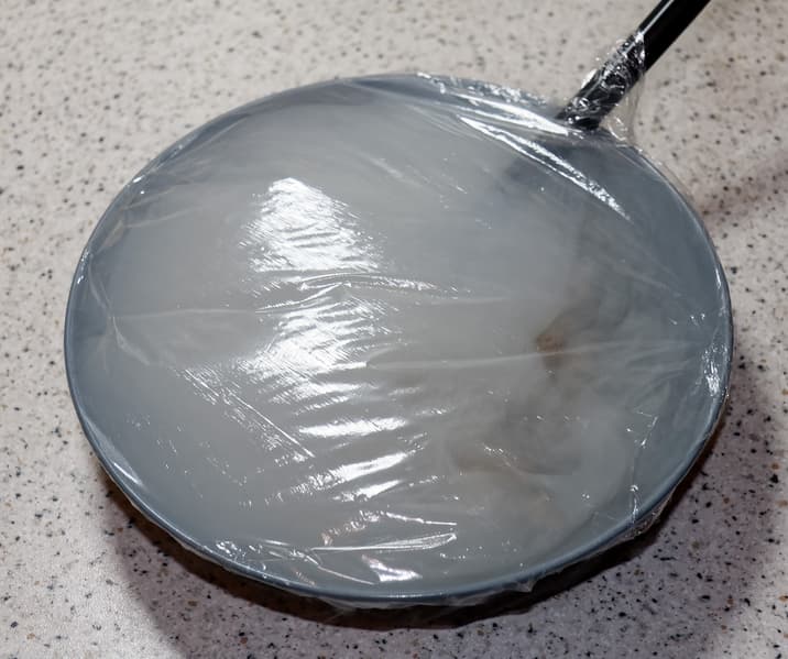 Наш опыт показал, что гораздо лучше пакета для этой задачи подходит сочетание из обычной пищевой емкости и пищевой пленки: дым заполняет такую конструкцию гораздо легче, чем пищевой пакет.