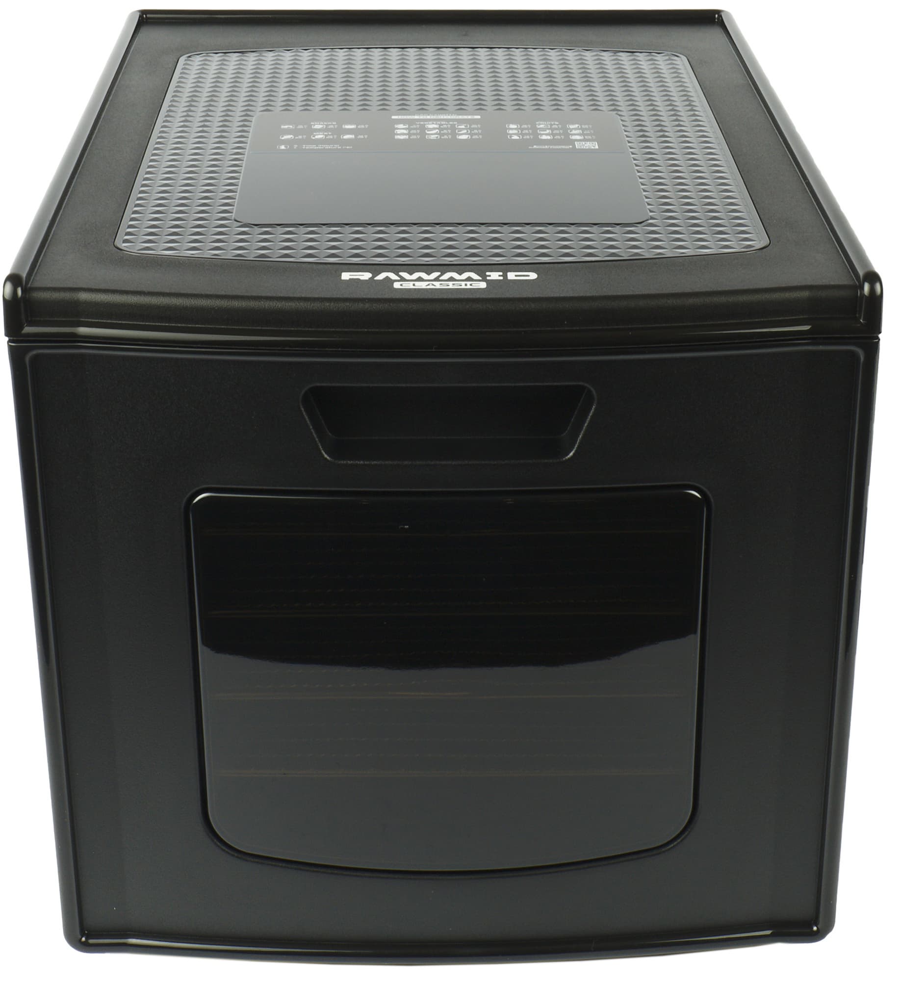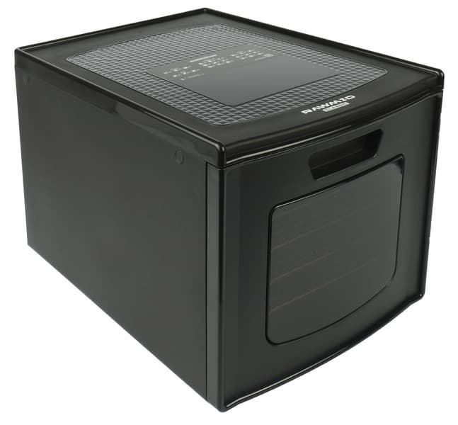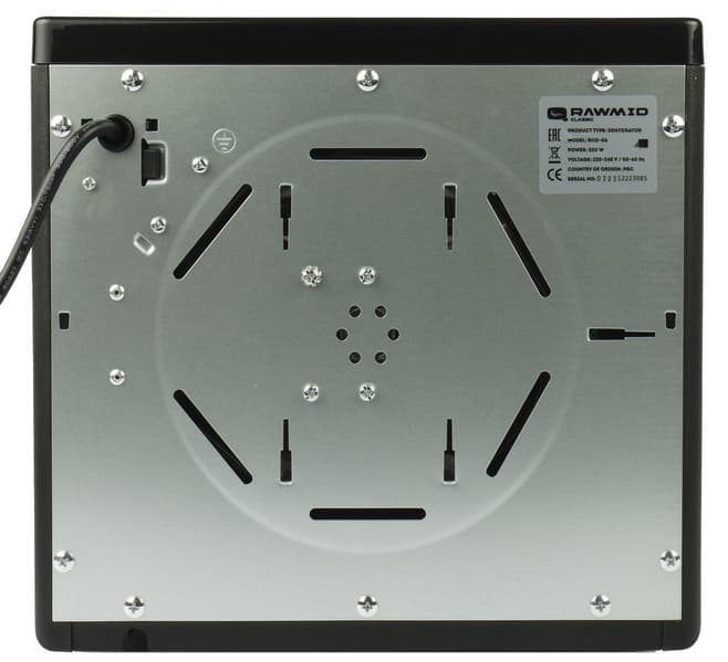 Дегидратор Rawmid Classic RCD-06 представляет собой компактный духовой шкаф, оснащенный одним режимом работы — горизонтальным конвекционным обдувом с нагревом. Ширина сушилки составляет 29 см, высота — 27,5 см, а глубина — всего 40 см.