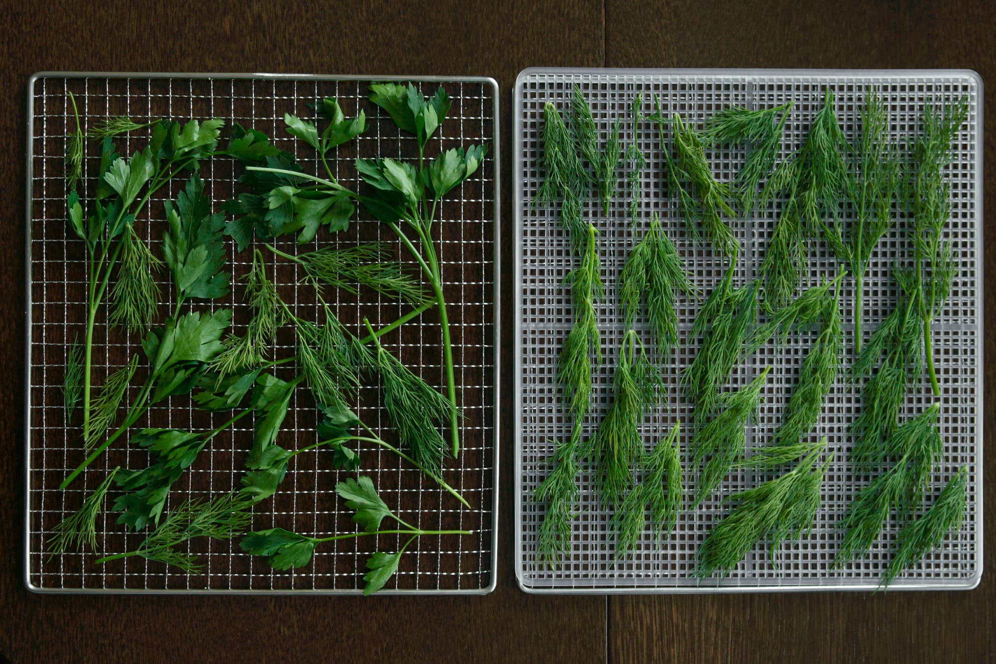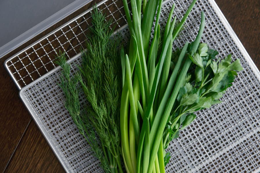При сушке зелени мы использовали минимальный нагрев в 35 °C.