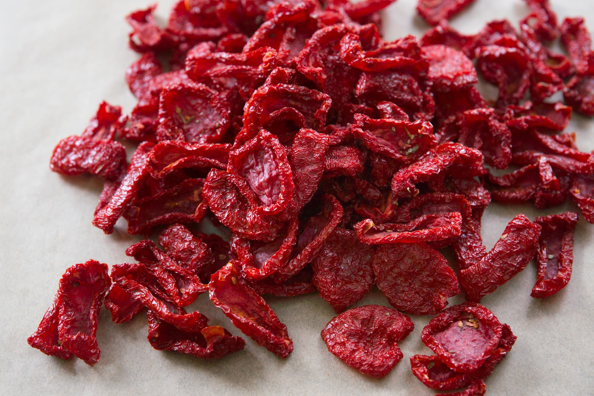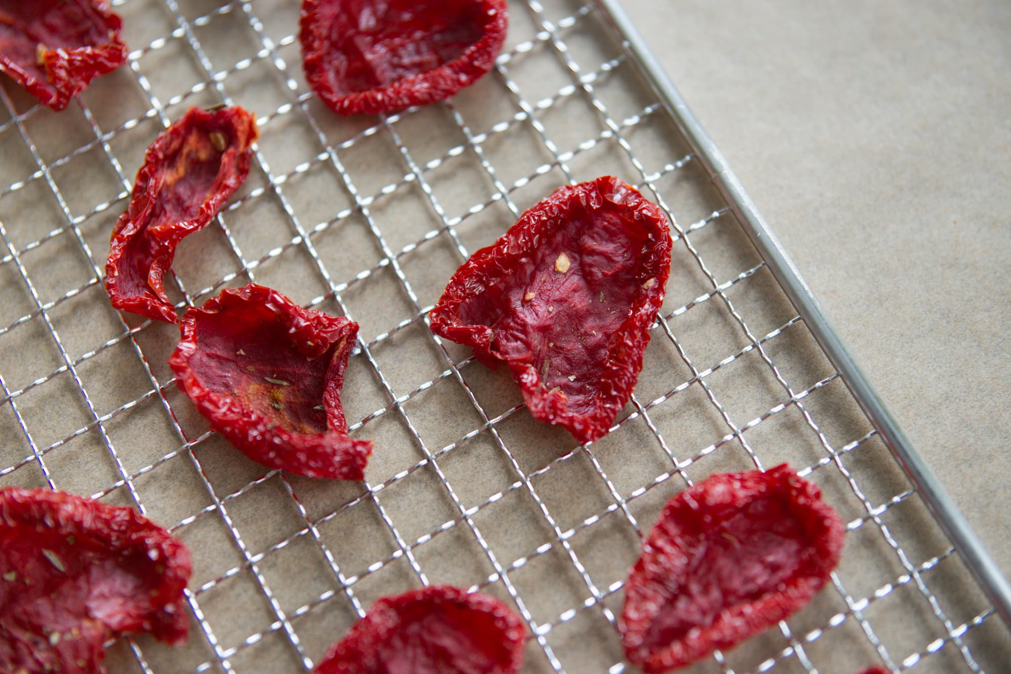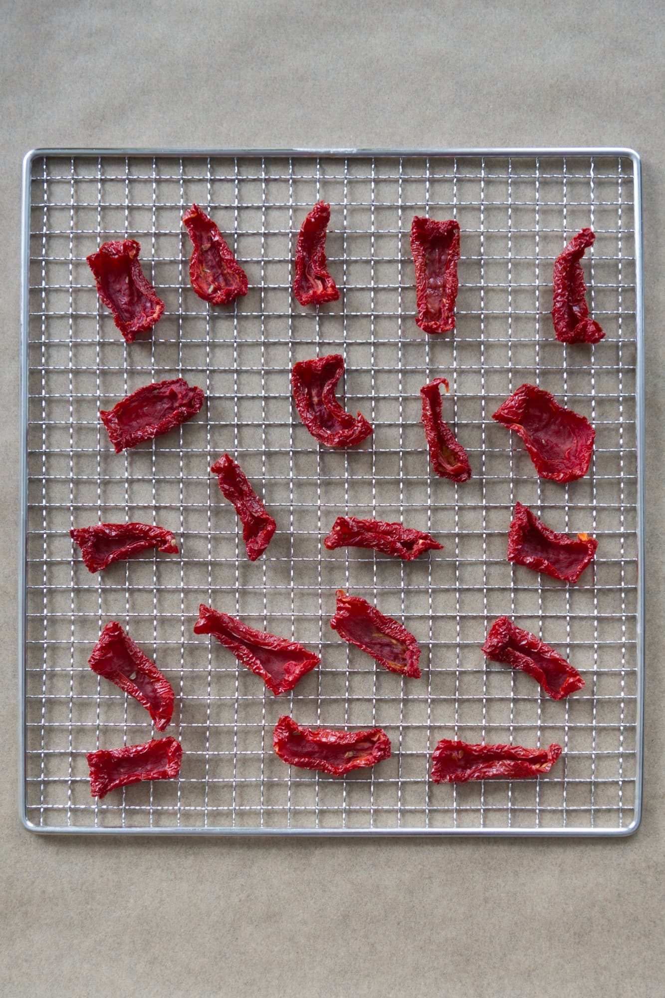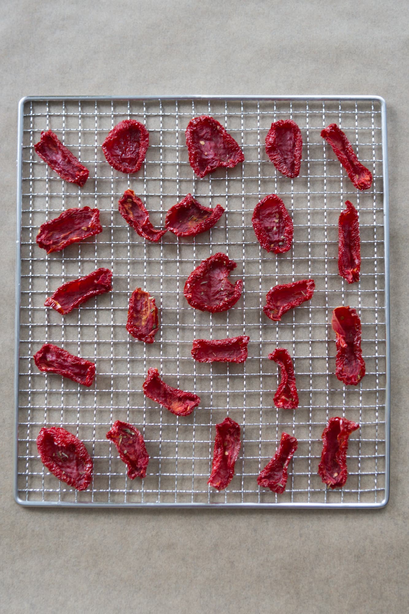 В итоге из свежих долек общим весом 2,6 кг, занявших все шесть уровней, мы получили 220 г вяленых томатов.