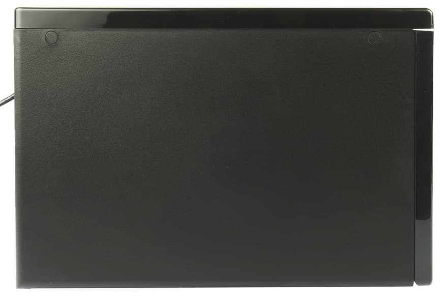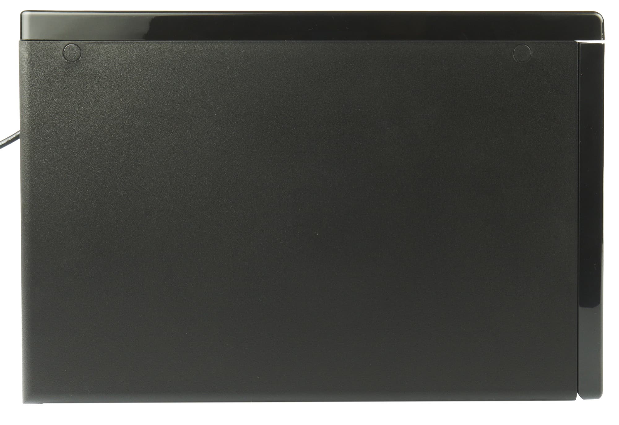 Корпус устройства выполнен из черного пластика. Боковые стороны и дверца имеют матовую шершавую на ощупь поверхность, на гранях — глянцевые вставки.