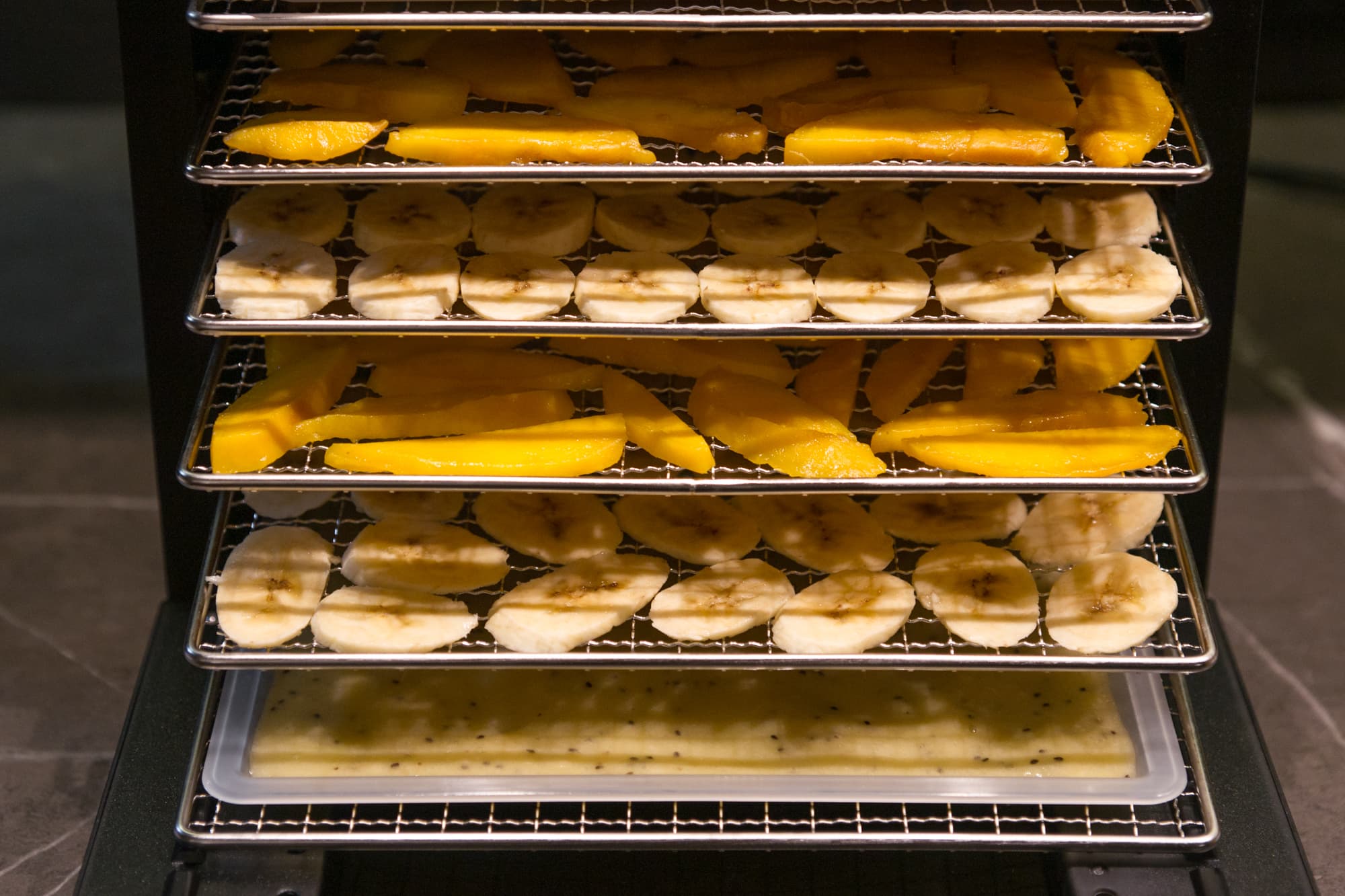 Тропический набор, отправившийся в камеру сушилки, состоял из тонко нарезанных манго и бананов.