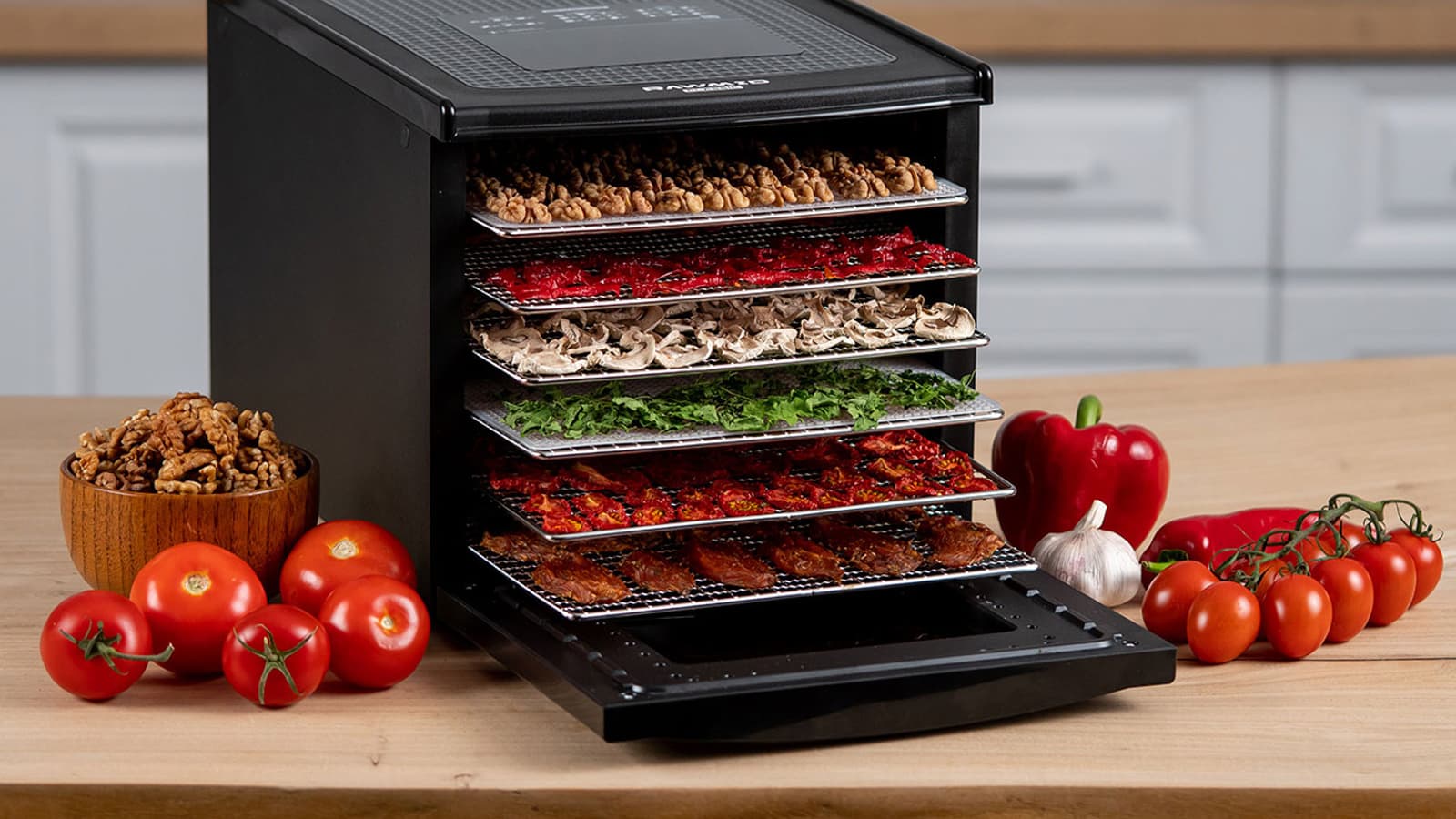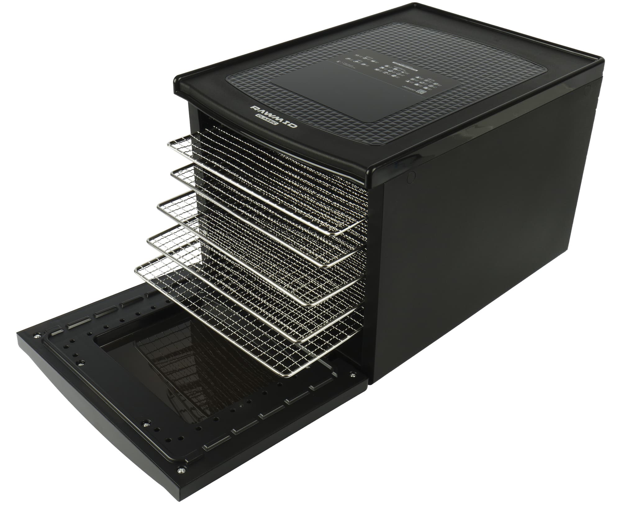 Идеальная сушка без необходимости постоянно проверять, ворошить содержимое лотков, менять поддоны местами и переживать, что забыл вовремя выключить — с дегидратором Rawmid Classic RCD-06. Нужно лишь правильно подготовить качественное сырье, тонко нарезать и разложить на поддоны. Кстати, резать тонко не обязательно: эта модель имеет шесть уровней, но количество установленных металлических сеток можно менять на свое усмотрение, что позволяет сушить продукты практически любых форм и размеров.