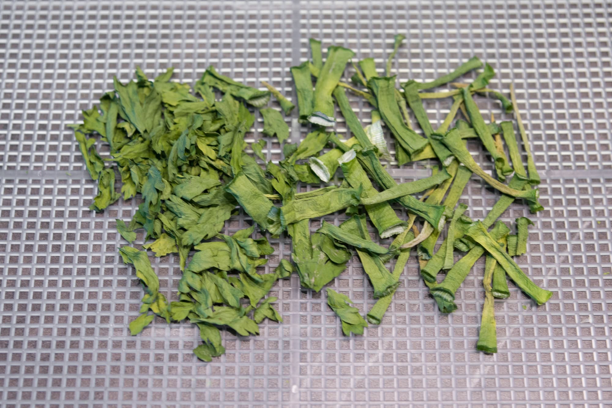 Листья петрушки и перья зеленого лука стали хрустящими и хрупкими через 18 часов.