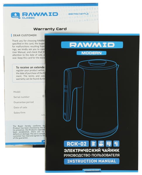 Электрический чайник Rawmid RCK-02 понравился нам строгим и стильным оформлением и несложным, удобным управлением. Благодаря двухслойной конструкции корпуса он долго сохраняет тепло, что позволяет избежать лишних затрат электроэнергии для дополнительного кипячения или подогрева. И обжечься об его поверхность невозможно.