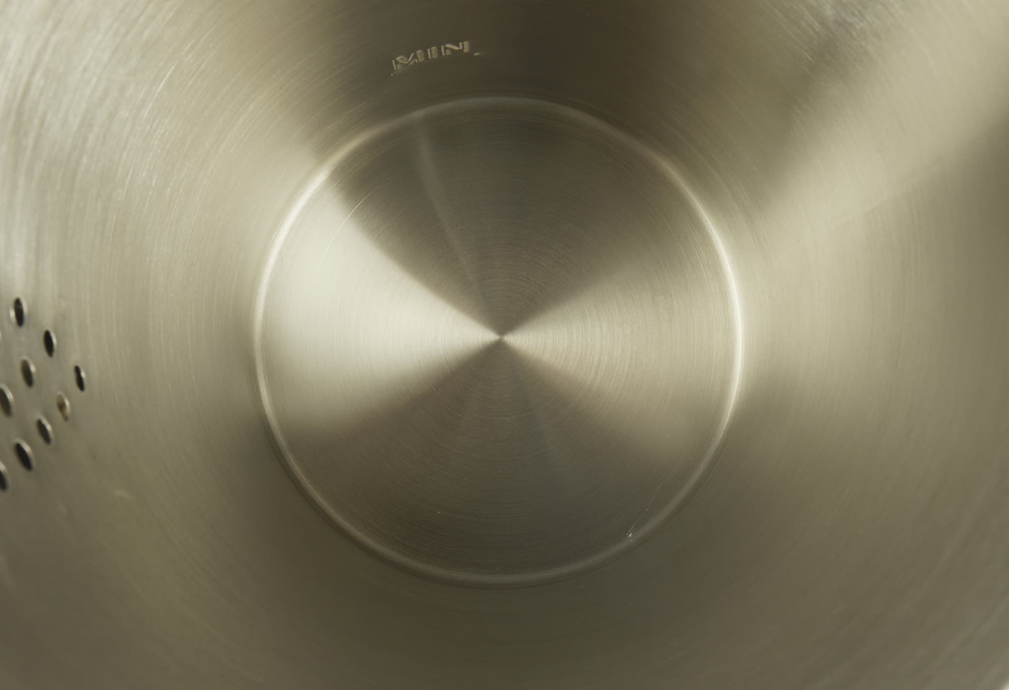Двухслойная конструкция призвана повысить теплоизолирующие свойства чайника и снизить шум при закипании. Внутренняя поверхность емкости выполнена из нержавеющей стали SUS304. В стальном носике — решетка с довольно крупными отверстиями.