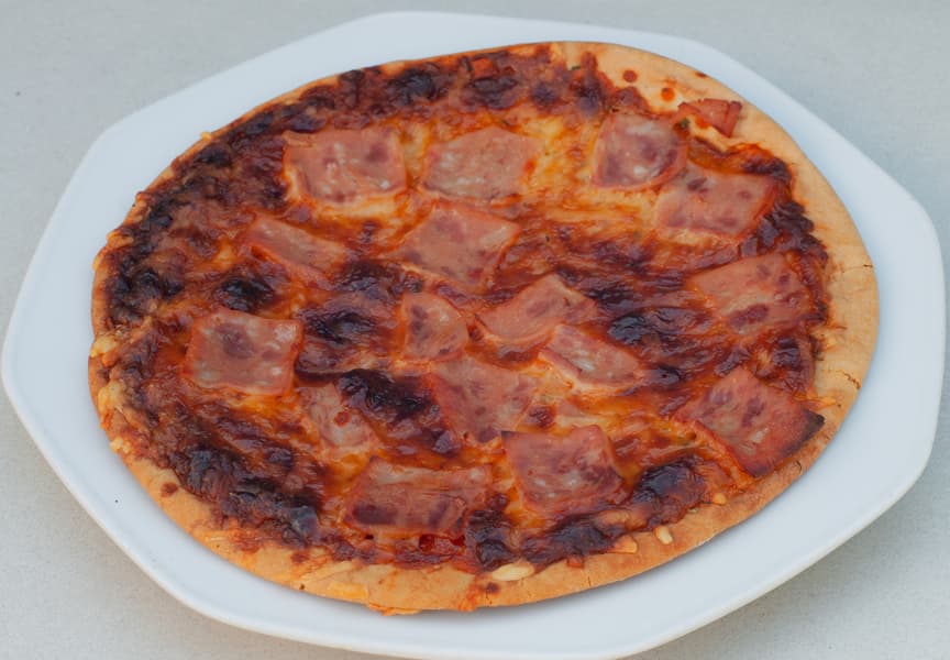 Мы взяли готовую размороженную пиццу и поставили на решетке на средний уровень, на режим F-21. Вероятно, режим рассчитан на приготовление сырой пиццы, так как наша немного пережарилась, хотя и не подгорела.