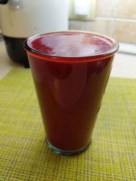 За 3 минуты и 31 секунду мы получили 460 г (46%) отличного морковного сока.