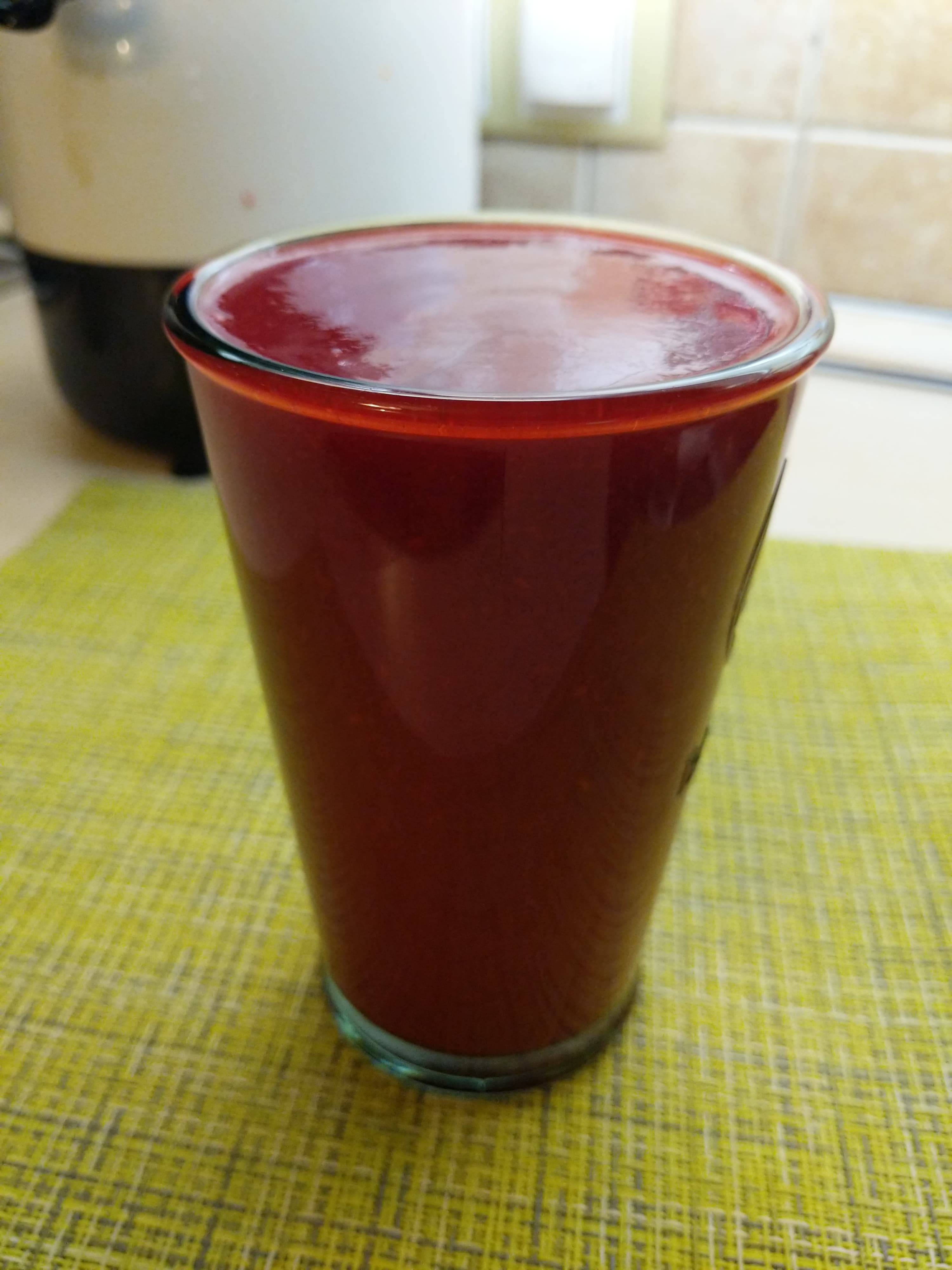 В получившемся соке мякоть не чувствовалась, он не расслаивался даже через несколько часов после отжима. На вкус он оказался так же хорош, как и на вид, а при необходимости его можно осветлить и получить куда более эстетичный вариант напитка, хоть в баре подавай.