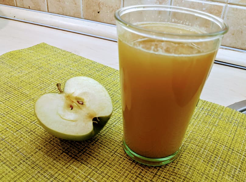 Нарезанные плоды шнек прибора измельчил довольно быстро. На обработку килограмма яблок ушло 2 минуты 33 секунды (это весьма неплохой результат). Выход сока составил 729 г (73%), при этом почти 1/6 объема заняла пена.
