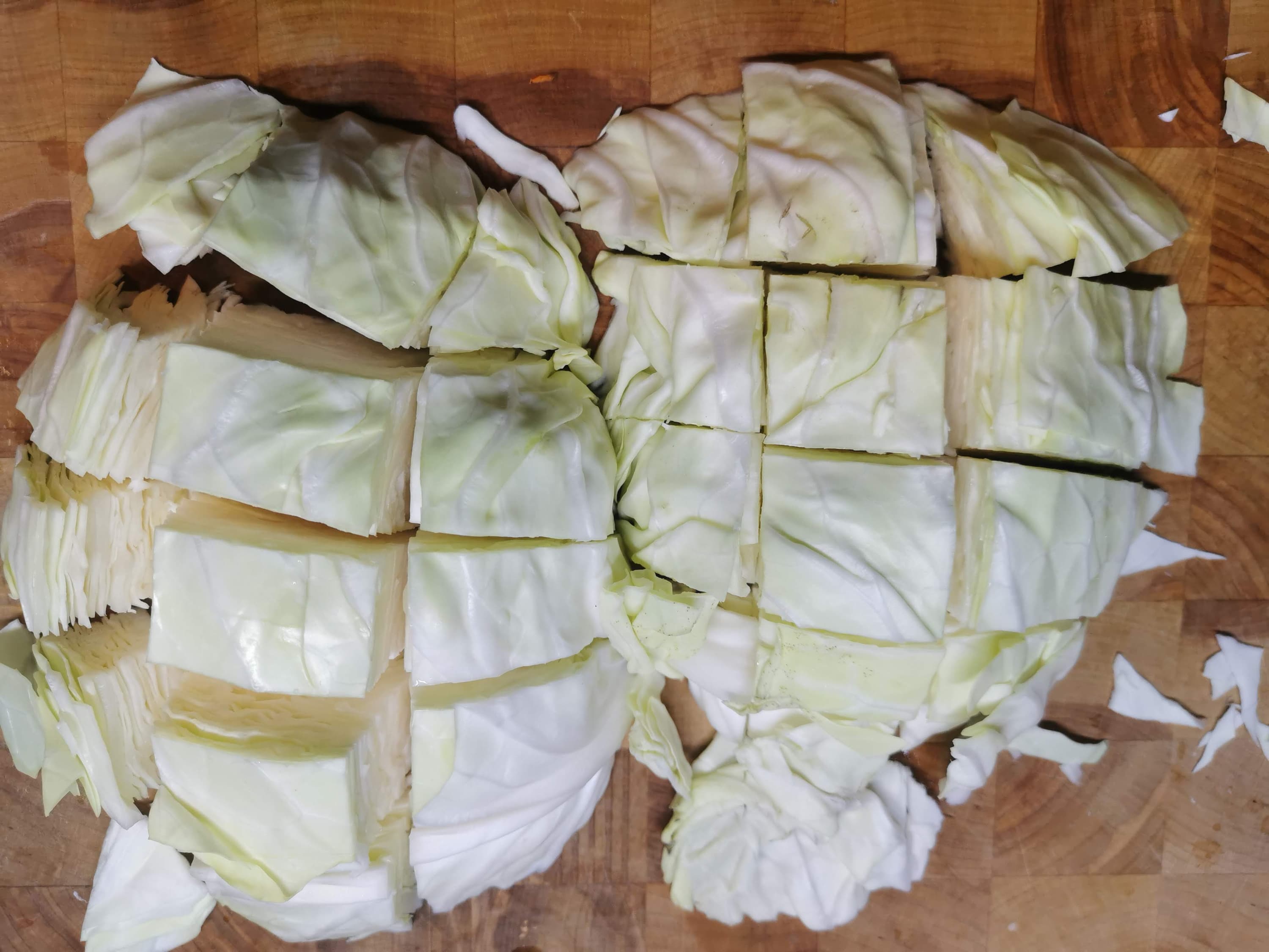 Для второго теста мы мелко нарезали килограмм белокочанной капусты.