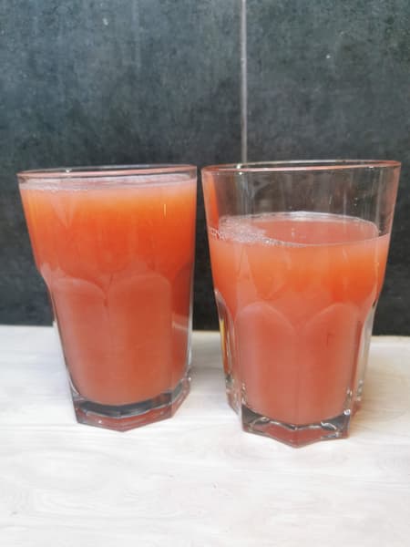 Грейпфрут очень быстро отжался, плоды были сочные, и нас порадовало количество полученного сока. Сам сок получился ярким и ароматным, с небольшим количеством пены.