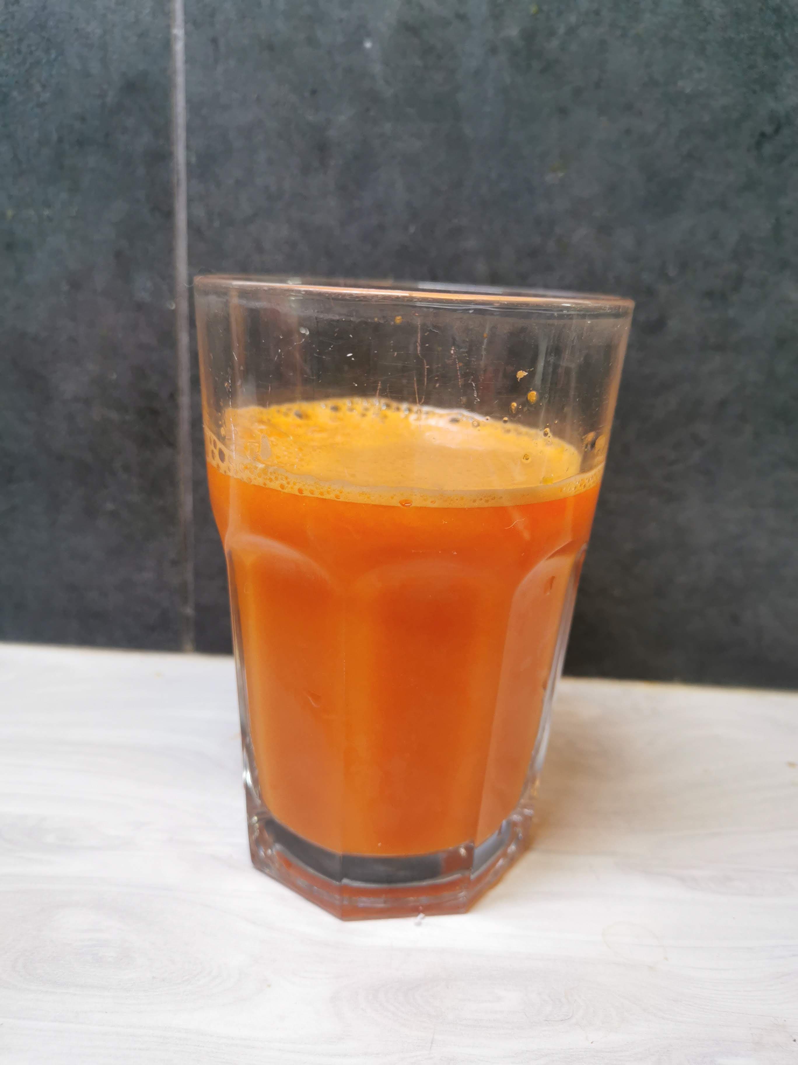 Зимняя морковь суховата, поэтому сока оказалось не так много, как хотелось бы. Но тем не менее мы получили яркий оранжевый однородный сок с минимальным количеством нежной светлой пены.