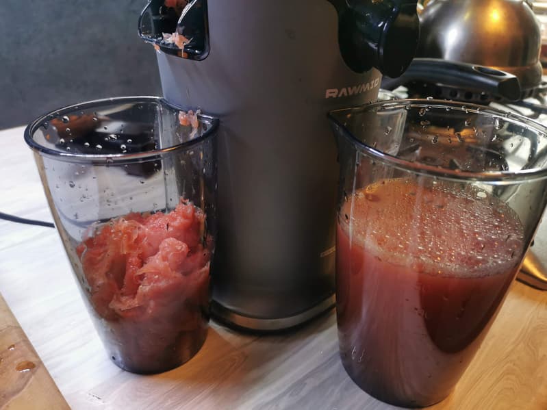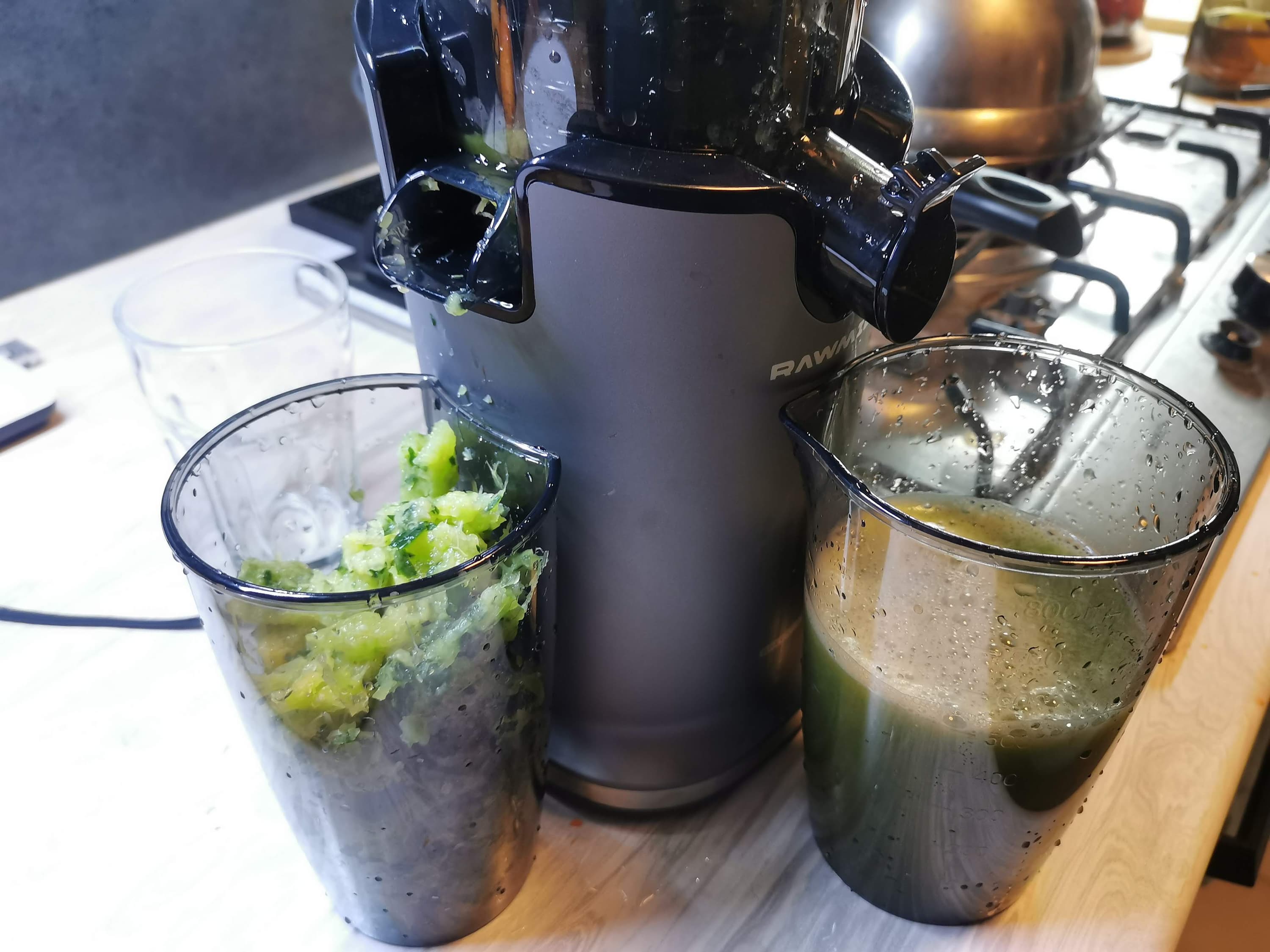 Rawmid Greenery RGJ-04 оказалась удобной и приятной в работе. Из плюсов мы хотим отметить простоту сборки и эксплуатации, невозможность запустить прибор в неправильной сборке, отсутствие частиц жмыха, вылетающих за пределы устройства на рабочие поверхности. Качество жмыха (мелкий, хорошо отжатый) оцениваем как отличное, как и качество и однородность сока.