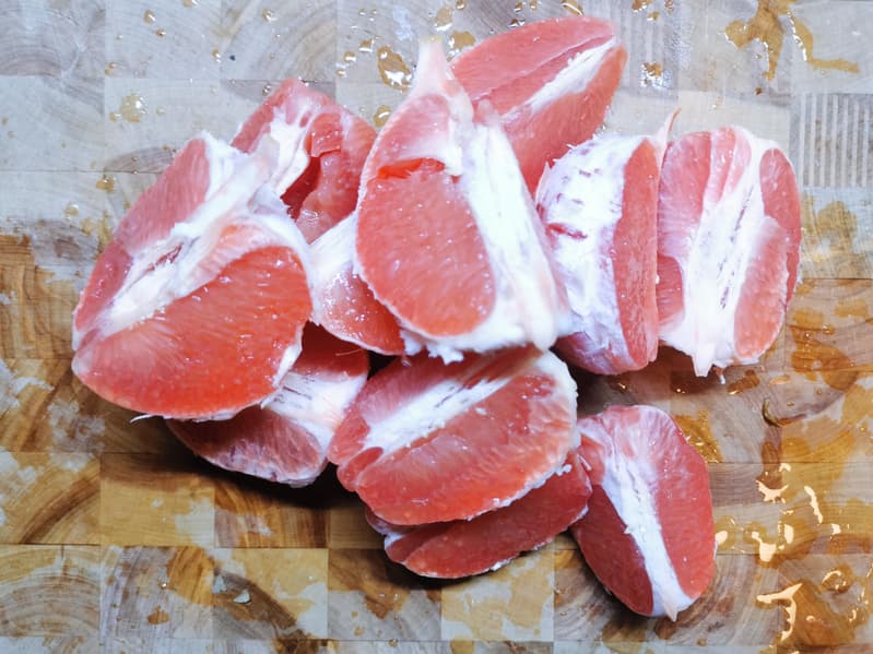 Для теста мы очистили три крупных грейпфрута и, убрав пару долек, получили нужный нам килограмм.