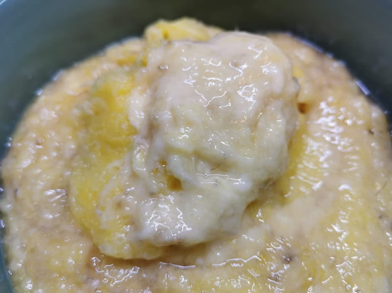 А получившуюся тропическую массу из сочного жмыха мы также с удовольствием употребили в пищу в качестве смузи.