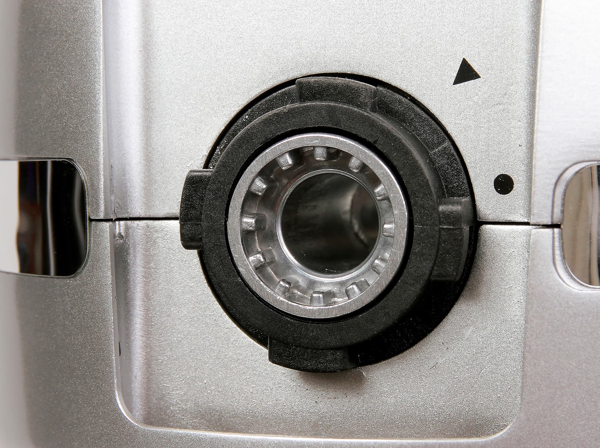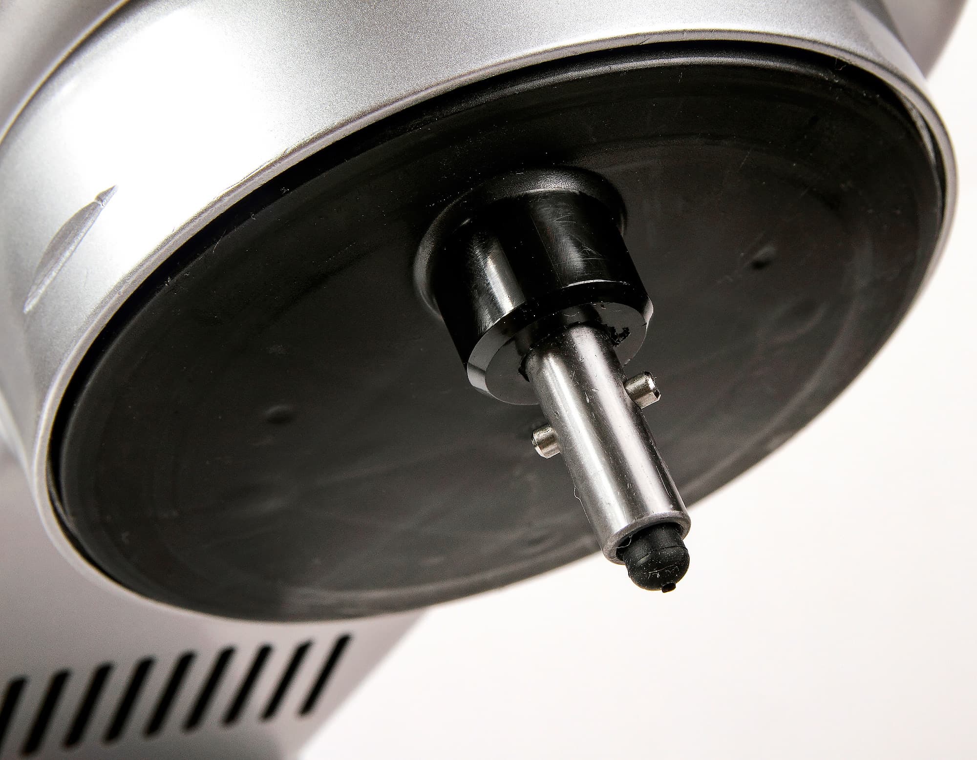 Приводной вал планетарного миксера стальной, с запрессованным поперечным штифтом для передачи крутящего момента на насадку. Крюк, лопатка и венчик фиксируются на моторном шпинделе обычным для такого типа креплений способом: нужно совместить пазы на валу с выступами на насадке, вставить до упора и повернуть против часовой стрелки.