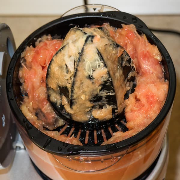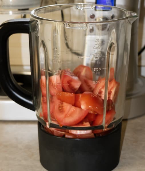 Пока в сковородке с оливковым маслом обжаривался лук, чеснок и фарш, мы измельчили в блендере помидоры. Это стандартный тест при тестировании блендеров. Берем 500 г помидоров, нарезаем их и превращаем в томатный смузи. Параллельно оцениваем, за какое время продукт превратится в жидкую помидорную массу, насколько эта масса однородна, что происходит со шкурой и косточками.